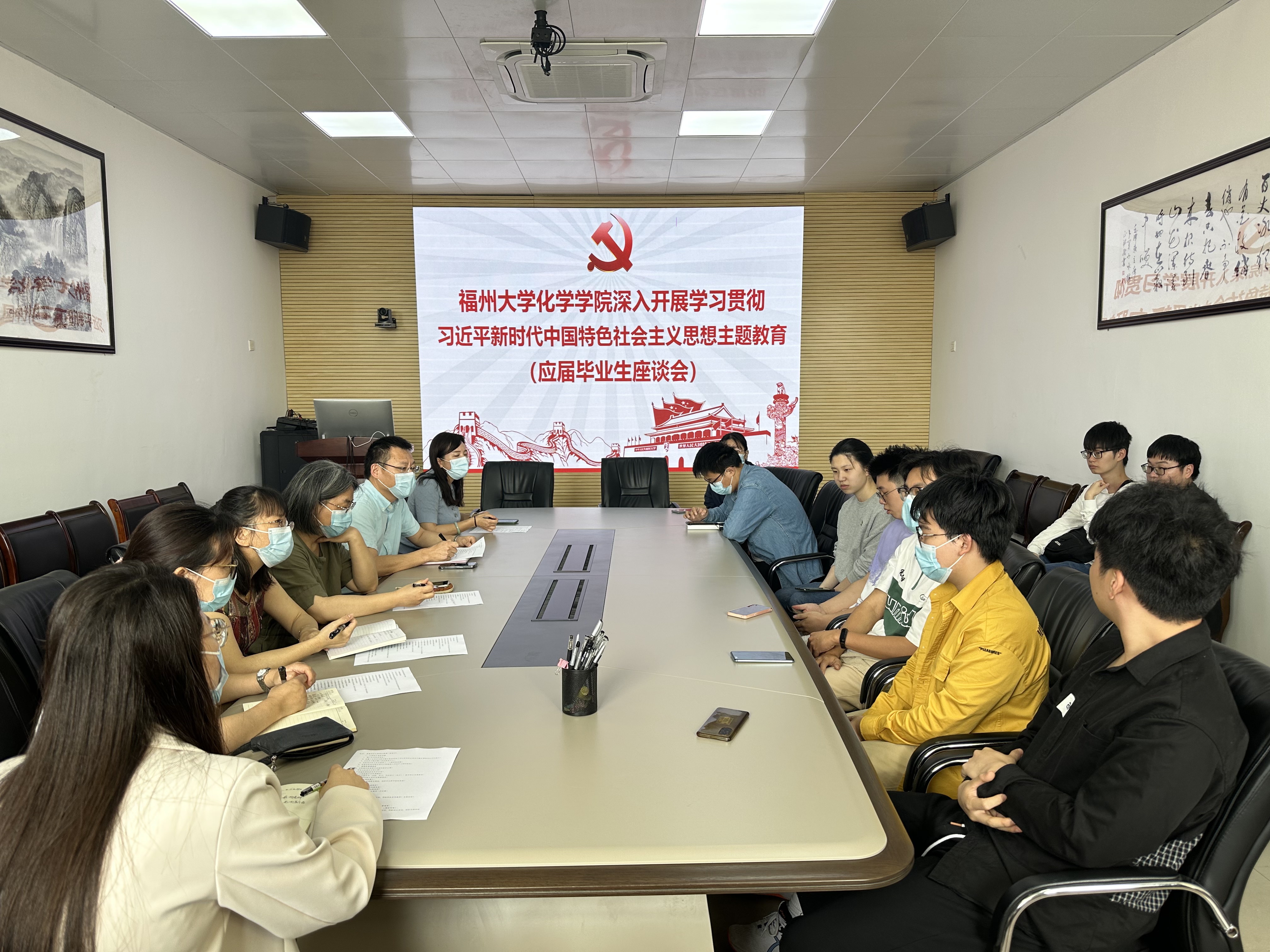 本科教学的意见和建议,为学院今后能更有针对性地持续改进本科教学工作,提高人才培养质量,化院于5月24日上午在嘉锡楼504召开主题教育专题系列活动——应届毕业生座谈会。参加此次座谈会的有化学学院教学副院长林子俺,系主任林翠英、孙燕琼、陈宪,辅导员李诗琪以及2019级12位本科毕业生代表,会议由教学办林凌老师主持。