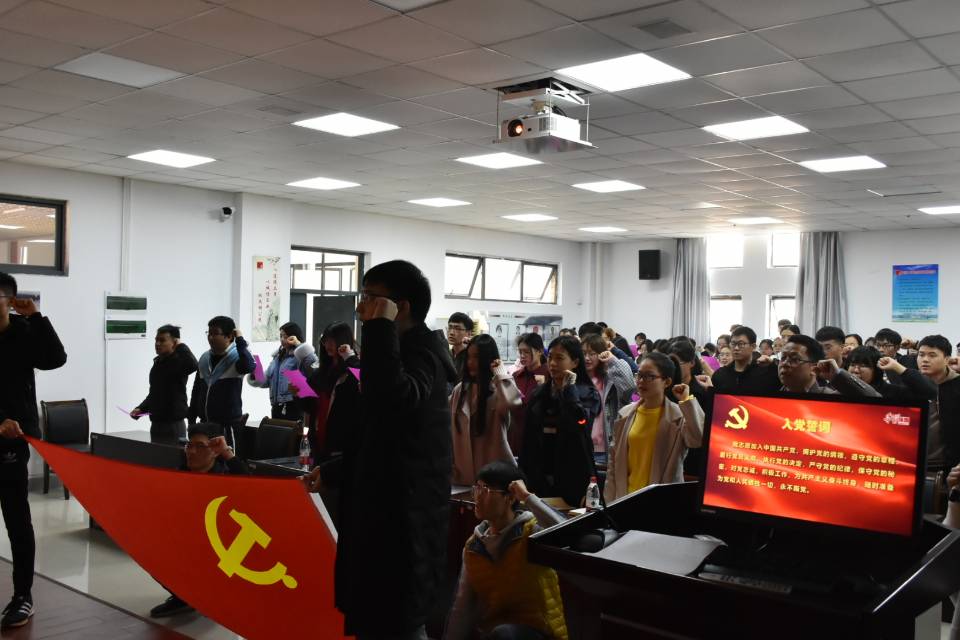 党委在嘉锡楼413报告厅隆重举行新党员入党宣誓仪式,出席此次活动的有院党委副书记刘旺老师、党委组织员、各年级辅导员、支部书记和2019年下半年新发展的57名党员参加此次宣誓仪式。