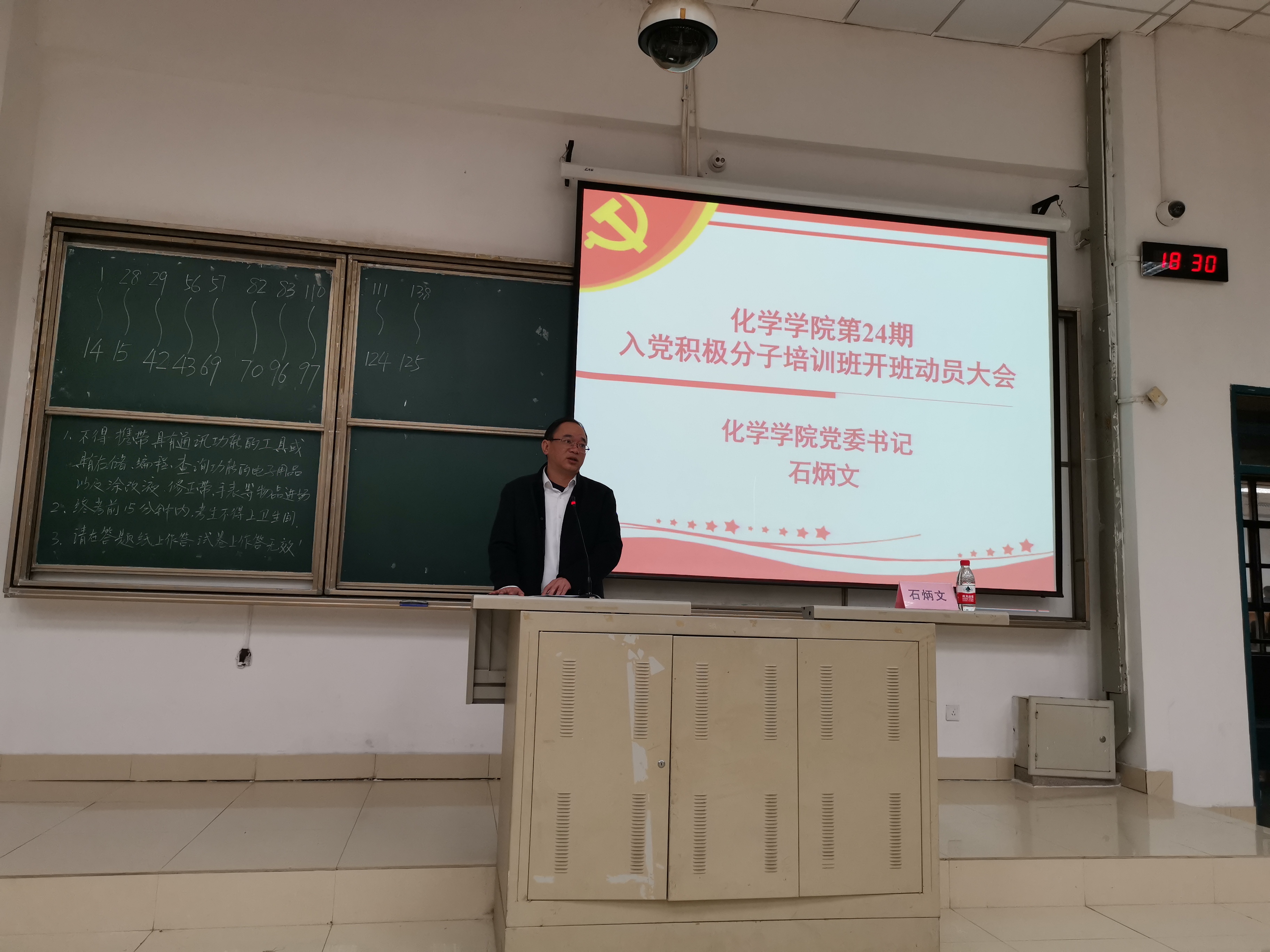 首先,院党委石炳文书记对此次党校开班做动员讲话,并对学员提出三点要求:一是希望大家认真学习中国特色社会主义理论体系,认认真真学党章;二是希望大家能端正入党动机,只有全心全意为人民服务才是唯一且正确的入党动机;三是希望学员们以后在学习、工作、生活上充分发挥先锋模范带头作用。希望广大学员能珍惜此次学习机会,学习习总书记“我将无我,不负人民”的担当情怀。