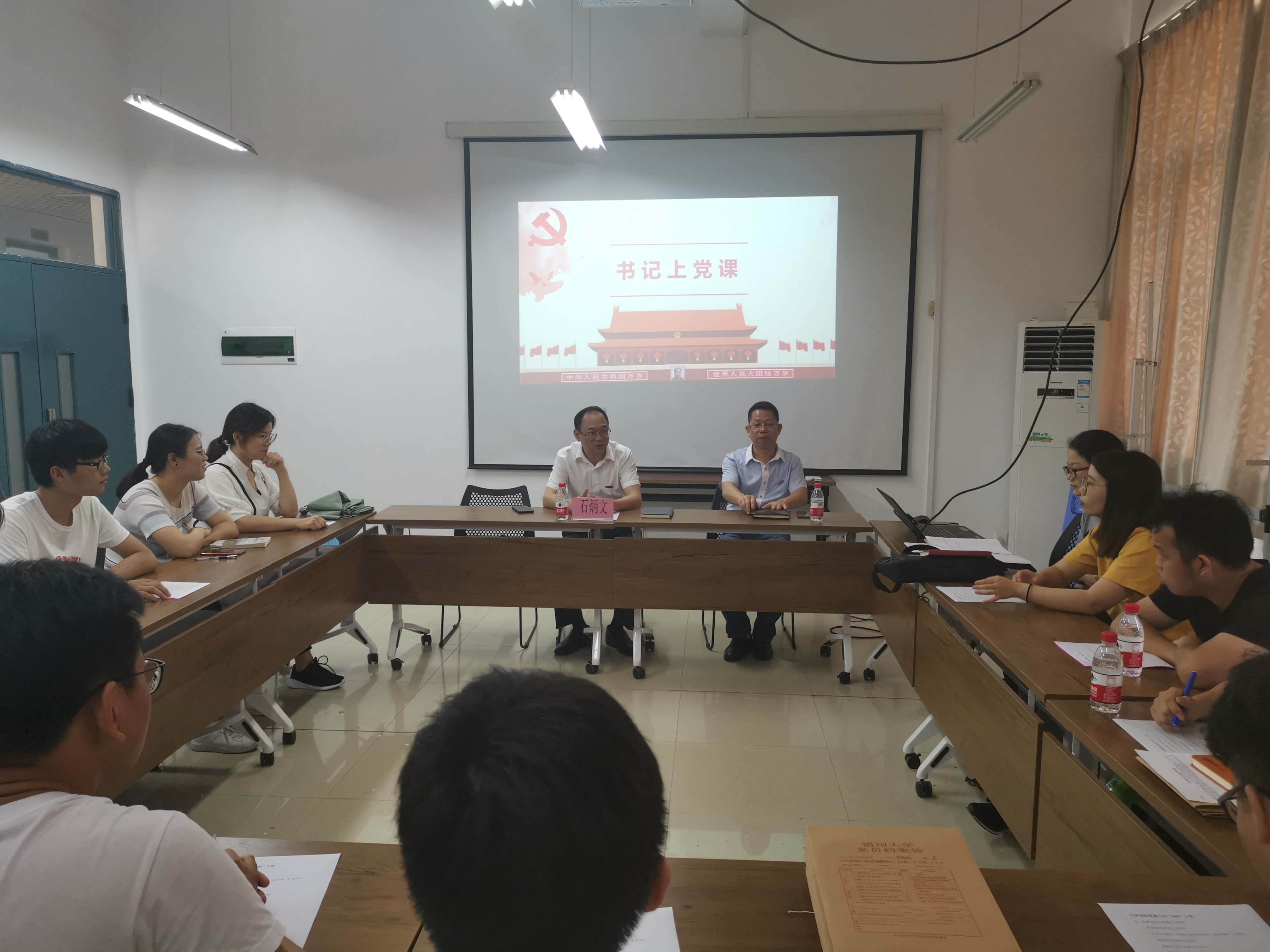 随后,党委书记石炳文老师给支部书记上党课,就学院党建工作“631”工程做重点强调,规范支部建设。部署“不忘初心担使命、建功立业新时代”主题活动,石书记希望各支部党员要认真读原著、学原文、悟原理,把《习近平新时代中国特色社会主义思想学习纲要》纳入学习计划。要求党员同志在学习过程中积极撰写学习心得,善于挖掘身边典型。将“不忘初心担使命、建功立业新时代”主题活动和暑期社会实践紧密结合起来,以实际行动感受和加深对习近平新时代中国特色社会主义思想的认识和理解。