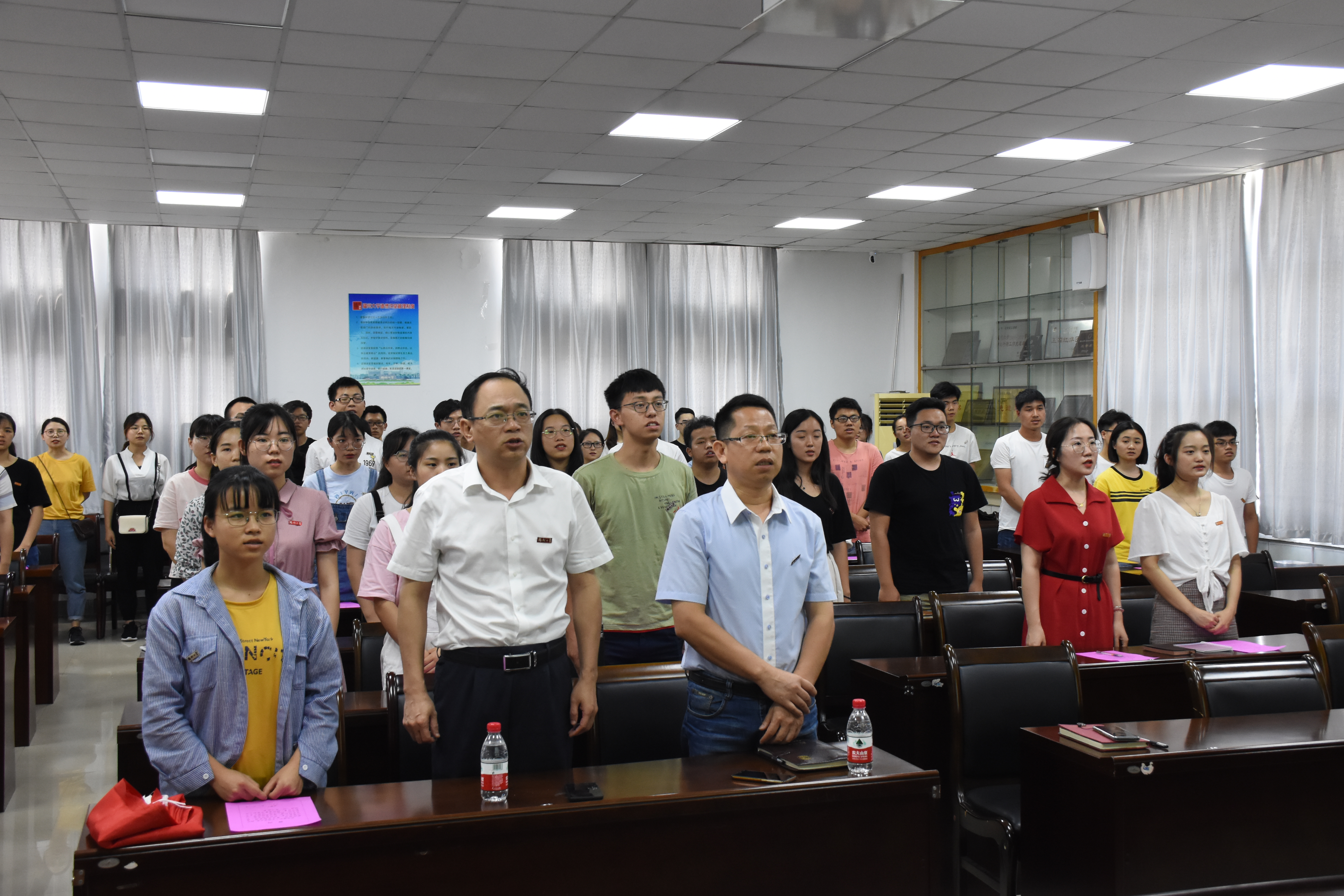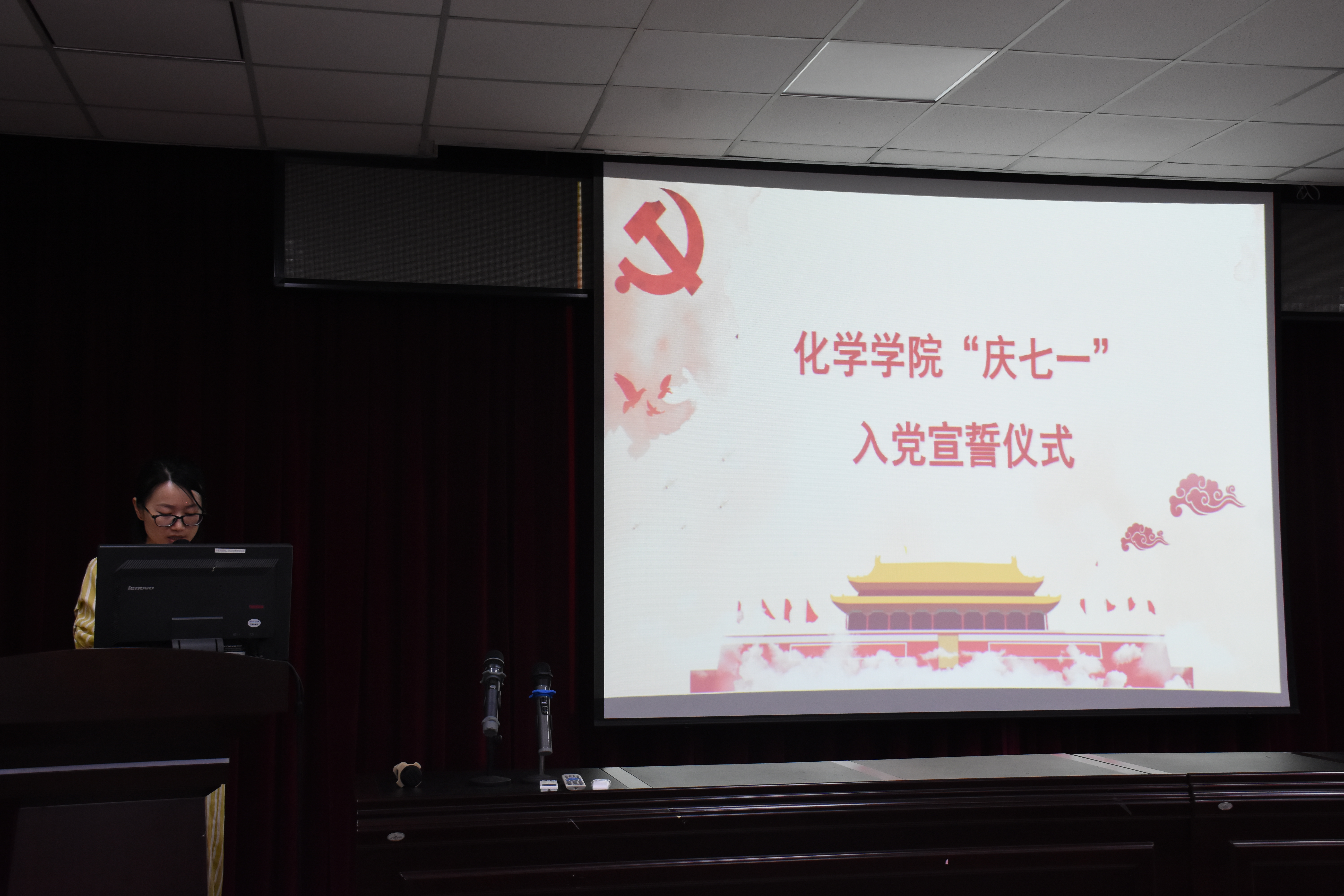党委在嘉锡楼413报告厅隆重举行“庆七一”入党宣誓仪式。院党委书记石炳文老师、副书记刘旺老师、组织员华琴老师、各年级支部书记和2019年新发展党员参加此次活动。