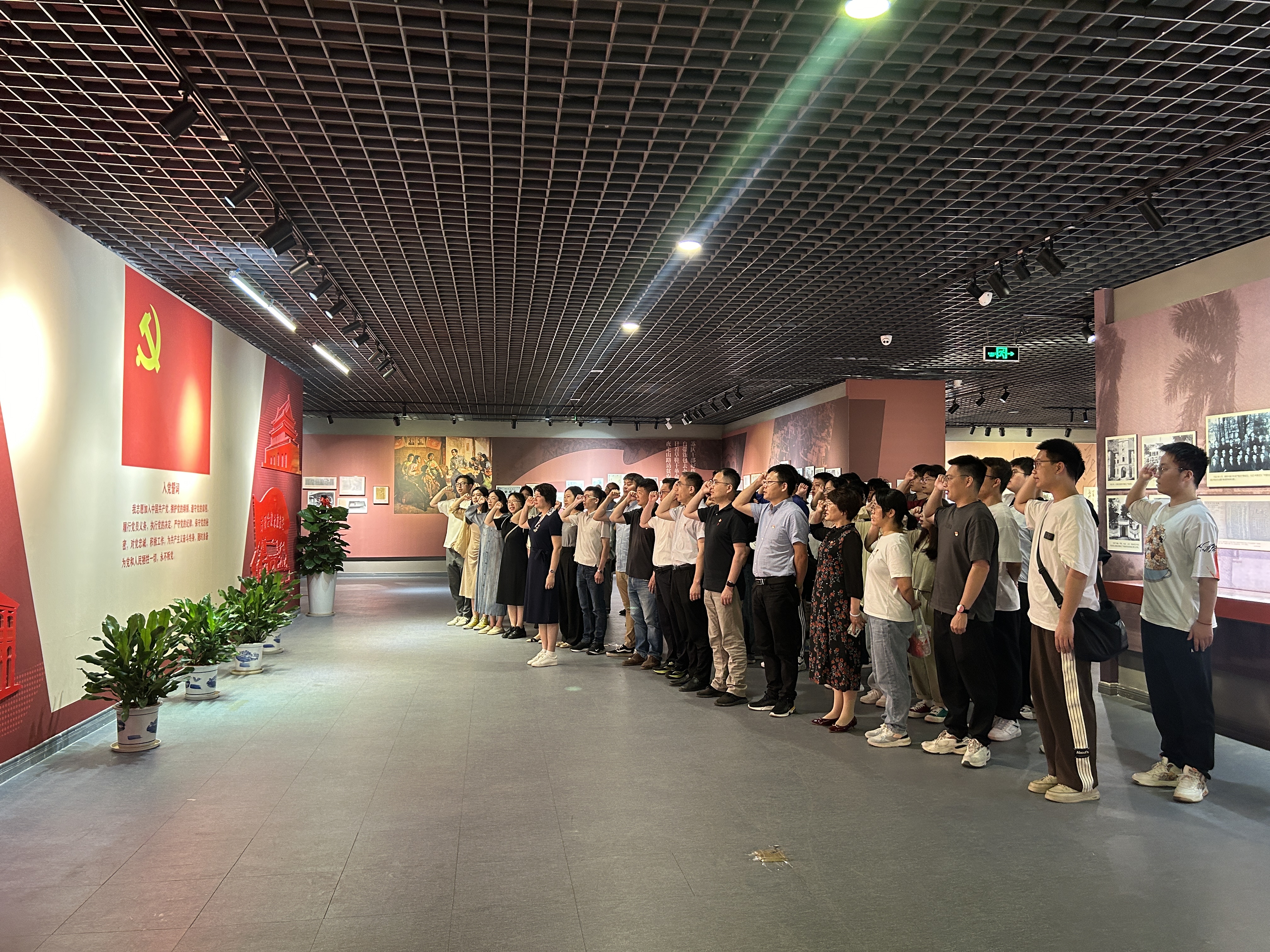 参观学习结束后,在学院党委张泓书记的带领下,全体师生党员面向党旗,手握右拳,重温入党誓词,重忆入党初心。党员们纷纷表示,要进一步传承和弘扬好红色基因,赓续红色血脉,通过深入学习党纪、党史等内容,把“学纪”落在实处、“知纪”落在细处、“明纪”落在深处、“守纪”落在严处,不断淬炼绝对忠诚的政治品格、夯实绝对可靠的能力基础、树牢绝对纯洁的作风形象。