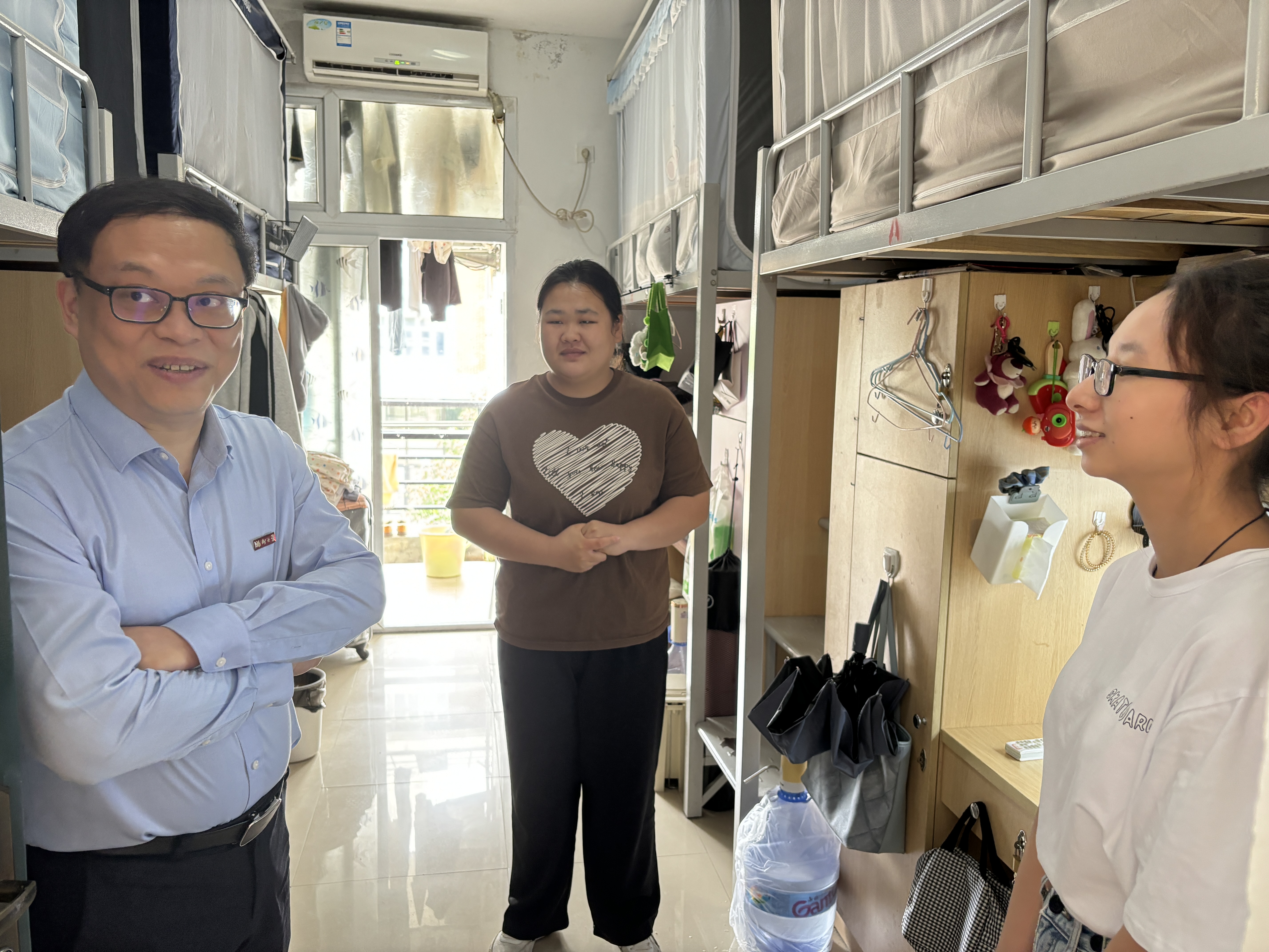 杨黄浩副校长深入60号楼学生宿舍与联系指导的同学亲切交流,并逐一询问了同学们在学习、生活、个人发展以及科研等方面的近况和困惑,面对同学们提出的问题,杨副校长耐心倾听,逐一解答,并向同学们分享了自己在科研和工作中的经验与心得,鼓励同学们提升专业水平,用扎实的基本功投身新时代新征程。