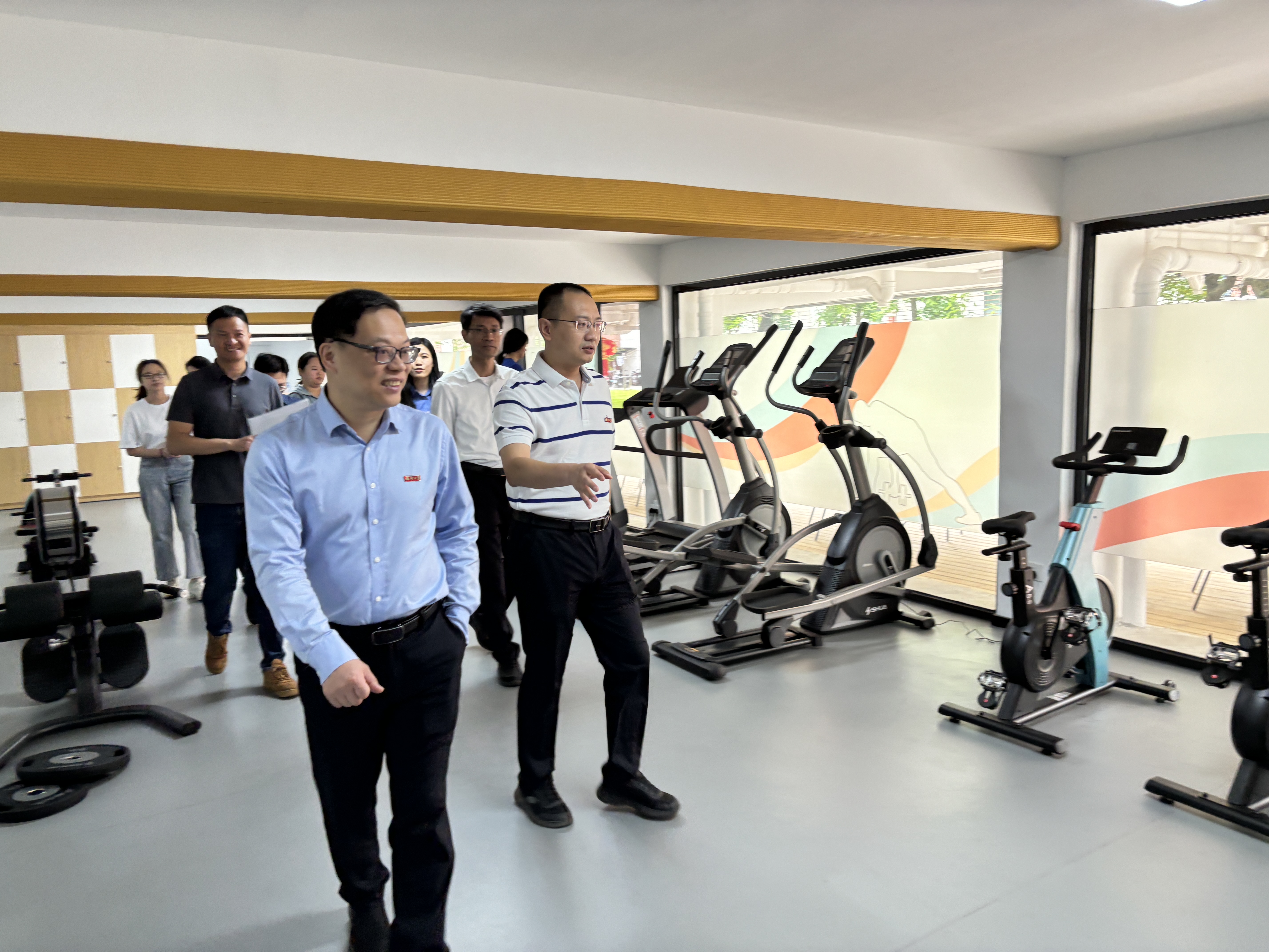 6月4日上午,校党委常委、副校长杨黄浩深入研究生公寓B区“一站式”健身活动共享空间调研指导,并为91快活林