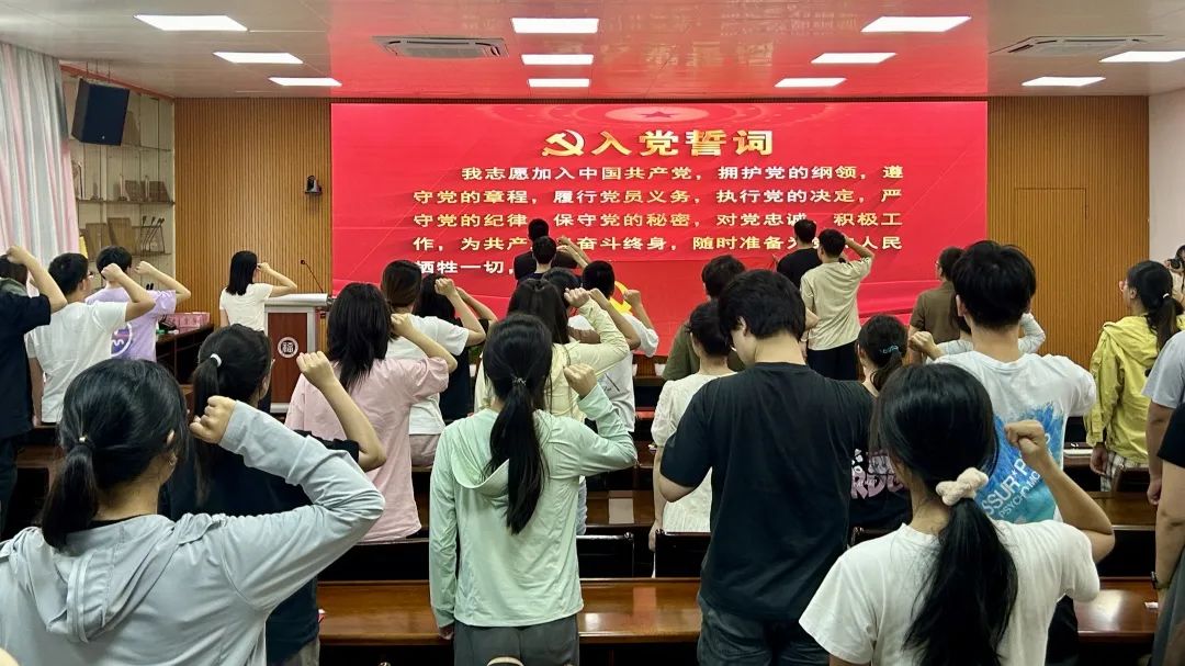 党委组织员华琴老师的带领下,全体新党员高举右拳,面向党旗庄严宣誓。铮铮誓言,拳拳红心,铿锵有力的声音彰显着每一位新发展党员坚定不移的理想信念和矢志不渝的奋斗决心。