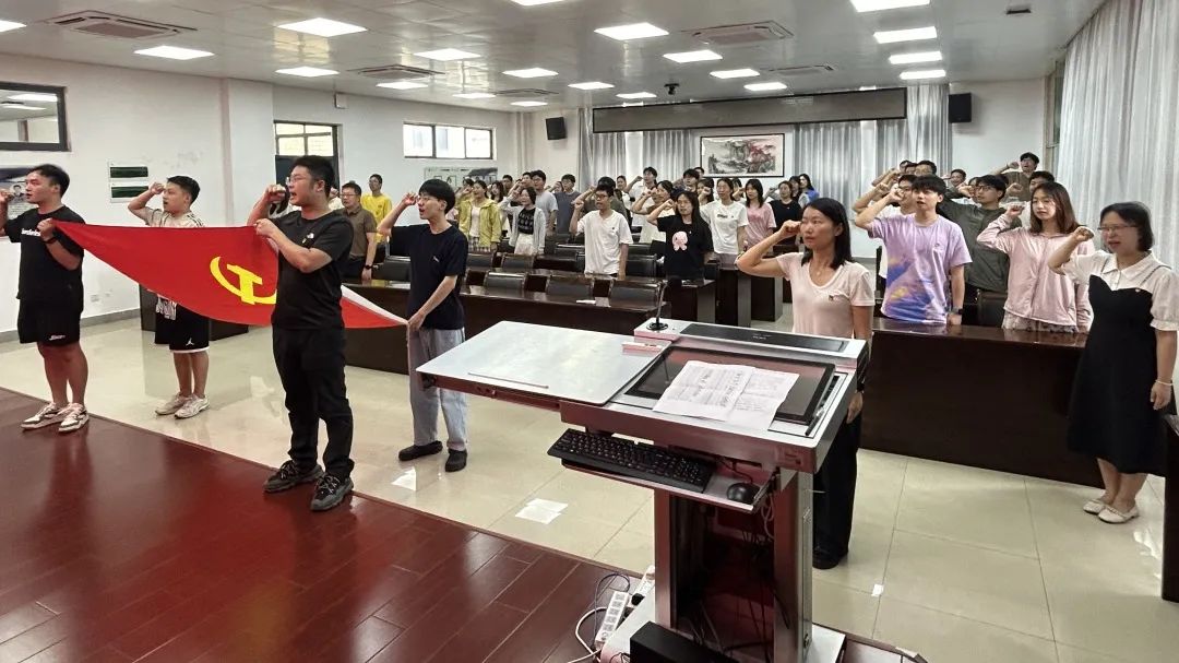 于嘉锡楼413会议室开展了新发展党员入党宣誓仪式暨警示教育活动。学院党委书记张泓,党委副书记常凯,副院长林子俺、张金水、谢在来,全体辅导员及新发展党员参加此次活动,会议由91快活林