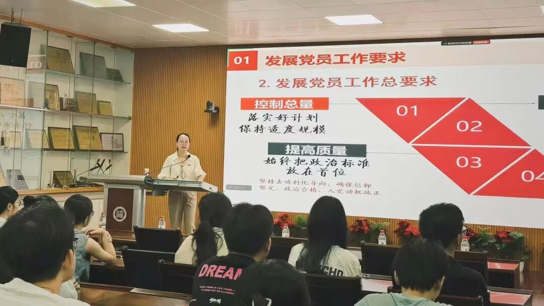 在发展党员工作实务培训上,赵艳莉老师围绕《中国共产党发展党员工作细则》,系统梳理了发展党员工作的全流程规范,重点围绕“申请入党、确定入党积极分子及培养教育、确定发展对象及考察、接收预备党员、预备党员教育考察与转正”五大核心环节,逐一解析。