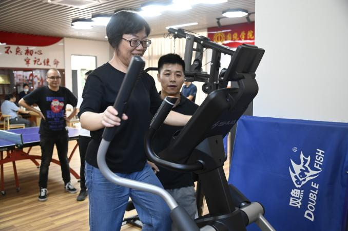 将健身器械全面升级的同时还请来了专业教练对教职工进行指导,保障运动安全,在教练的点对点精准指导下,大家学习了器材的使用方法,根据自己的身体状况选择了不同的器械体验,此次活动有效缓解教师长时间实验室钻研、教室中授课带来的亚健康等问题。崭新的乒乓球桌上,是化院教师热情洋溢的节拍,专业的健身器械上,是三尺讲台上游刃有余的缩影。