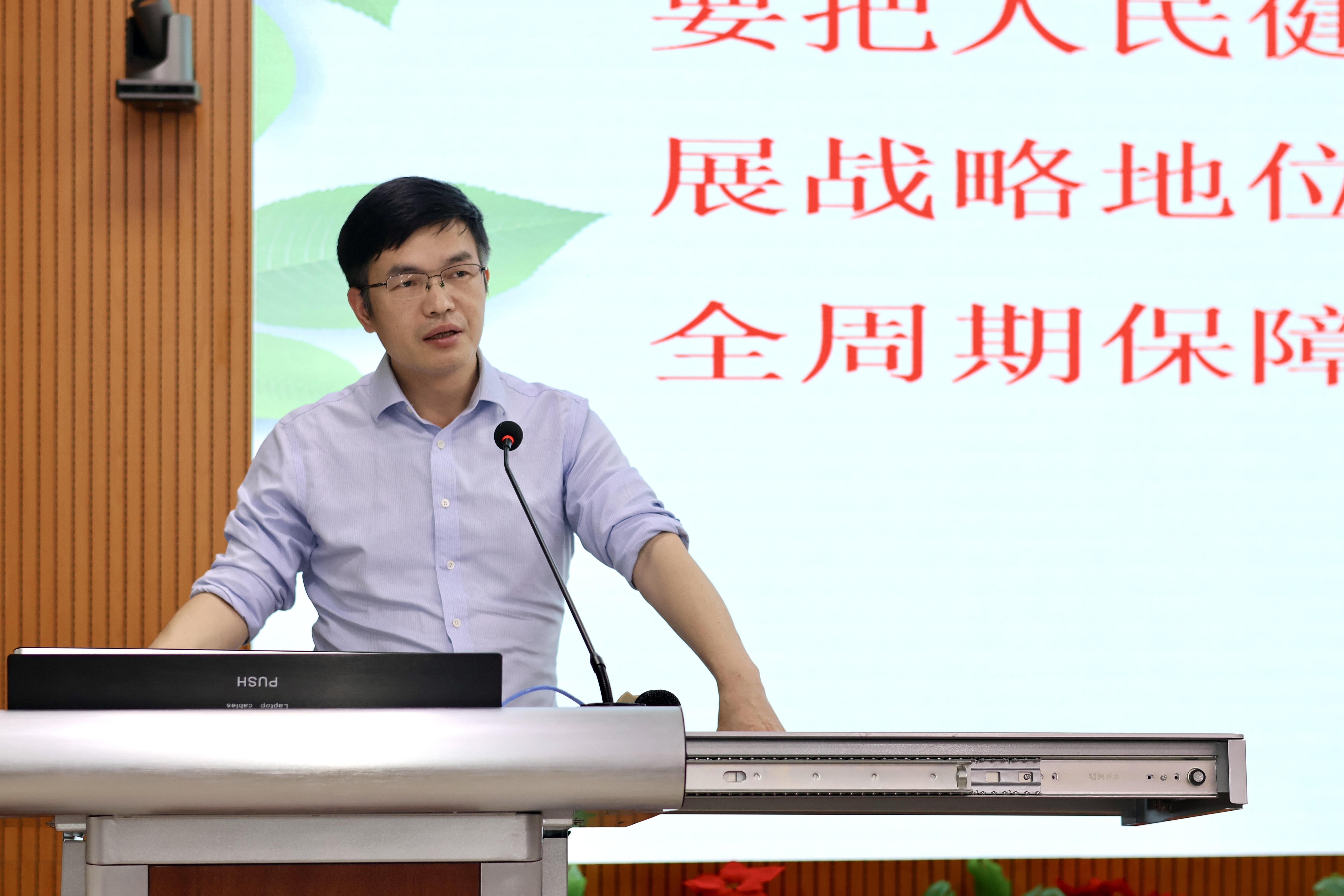 滨海院区综合外科三区行政副主任、副主任医师杨树钢立足于“结直肠癌可防可治”的观点,介绍了“病因预防”,“早发现、早诊断、早治疗”,“改善生活质量”的结直肠癌“三级预防”。他罗列出结直肠癌相关危险因素和保护因素,并分享了一些成功治疗结肠癌的案例,倡导老师们保持良好心态和生活习惯,避免闻“癌”色变。