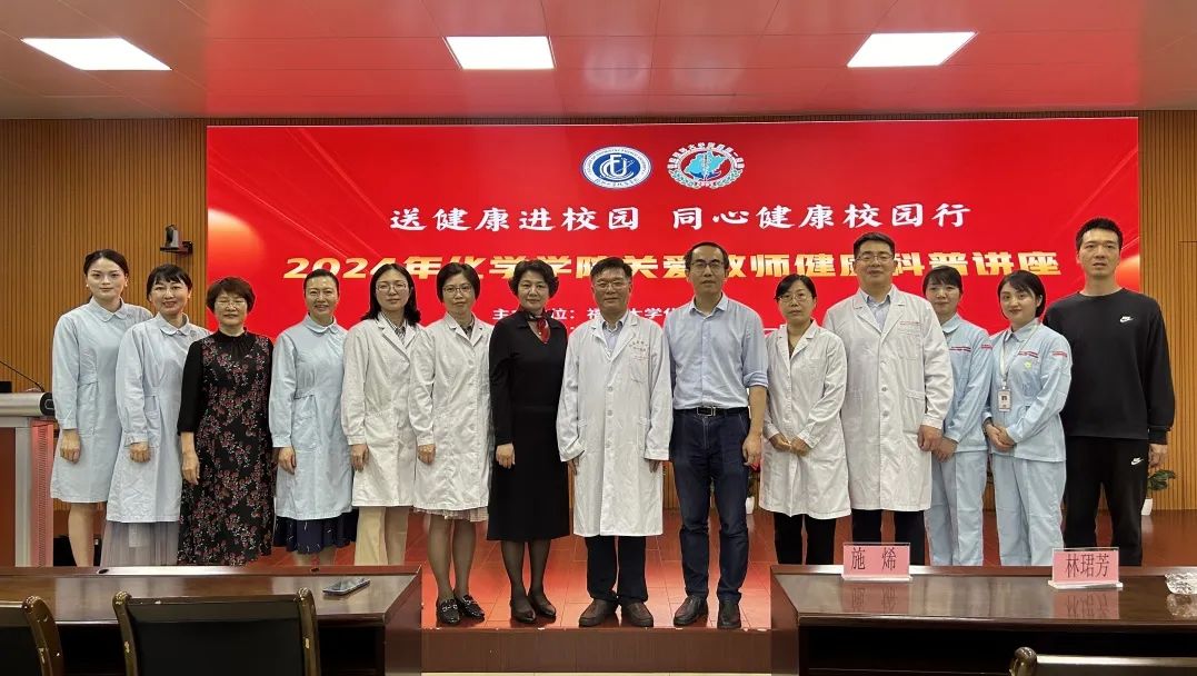 在嘉锡楼413会议室开展关爱教师健康科普讲座暨健康咨询活动,此次活动特别邀请到福建医科大学附属第一医院15位知名专家。院党委书记张泓,院长郑寿添,工会主席陈珠灵及教职工代表参加此次活动。