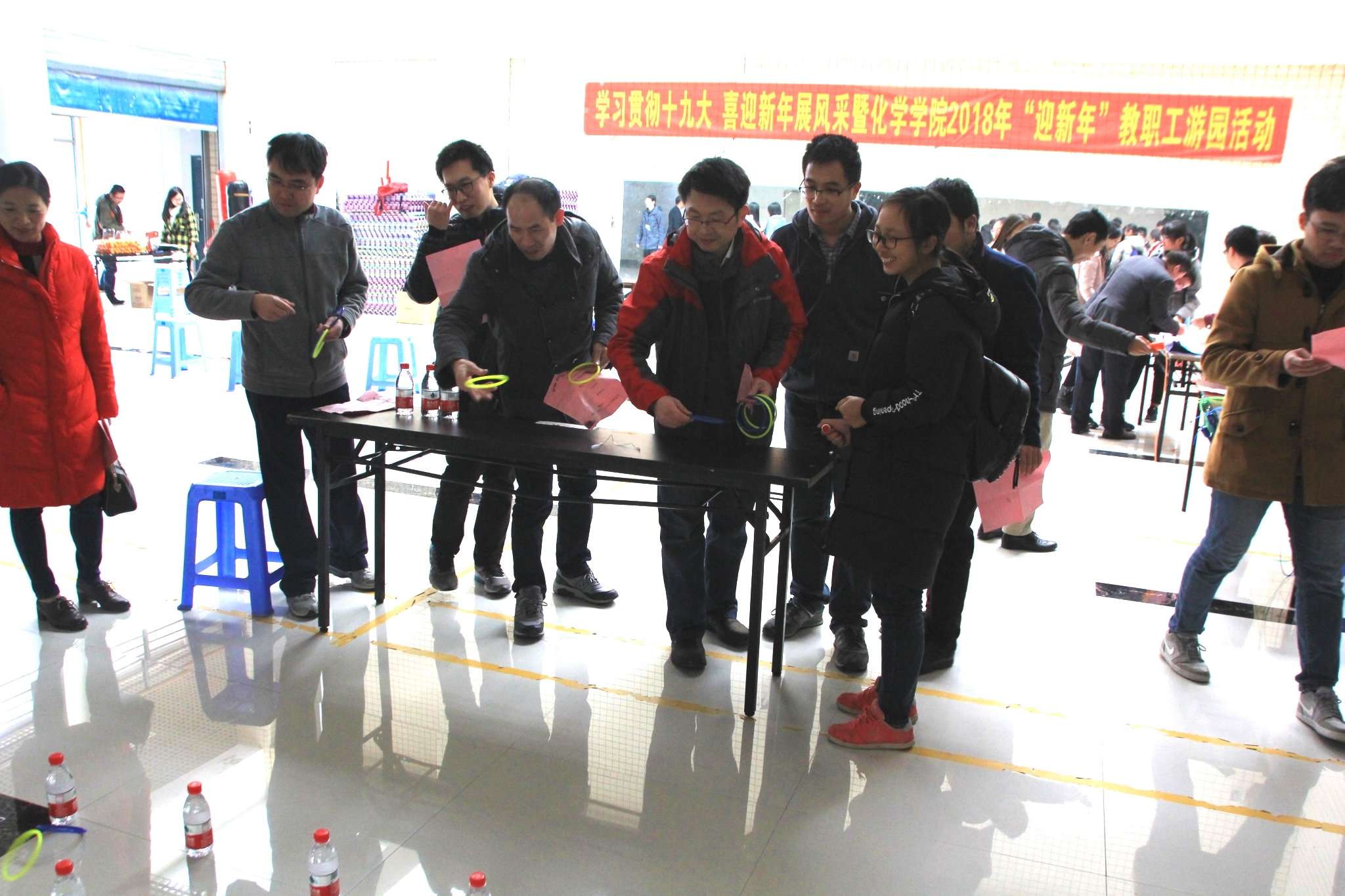 在嘉锡楼一楼大厅举办了“学习贯彻十九大 喜迎新年展风采”教职工游园会。院党委石炳文书记、王心晨院长、院党委刘旺副书记、黄剑东副院长、袁耀锋副院长、唐点平副院长、院工会陈珠灵主席等党政工领导与全院教职工一起参加了此次活动。