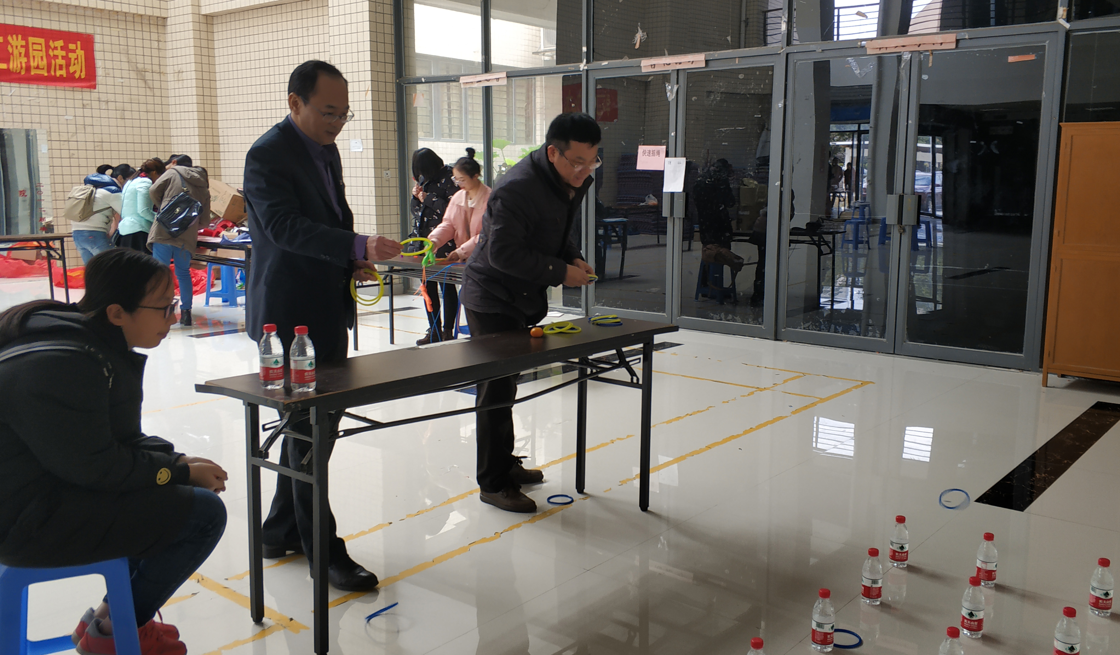 为了给学院教职工提供一个放松身心,增进交流的机会,本次游园会以互动游戏为主,共设置“乒乓来福”、“鸿运当头”、“十九大知识竞猜”、“快速摇绳”、“百发百中”、“过犹不及”、“懒惰的自行车”等七个项目,内容丰富、形式多样、趣味横生。每位老师不限参与游戏项目,达到游戏规定可获通关小红花一朵,并换取新年纪念品。