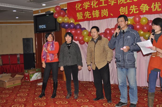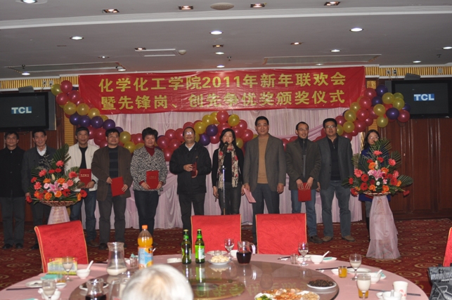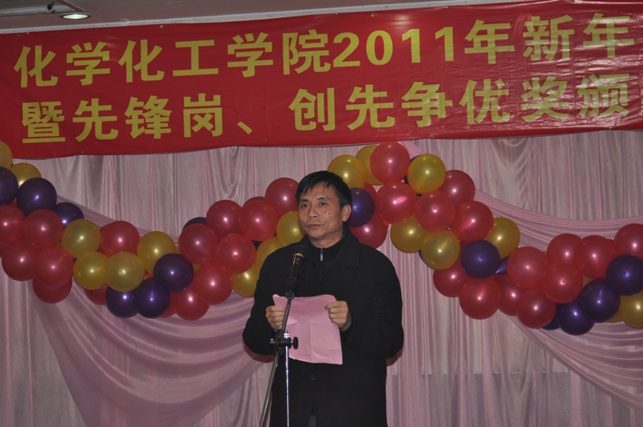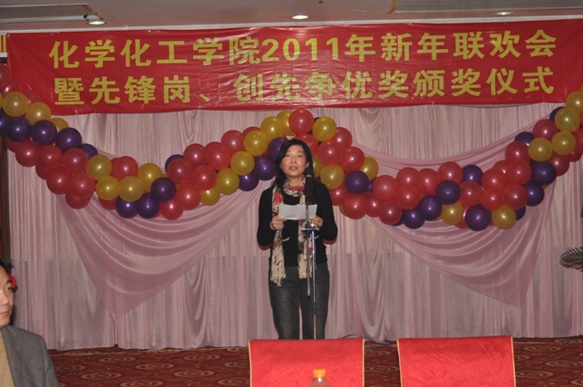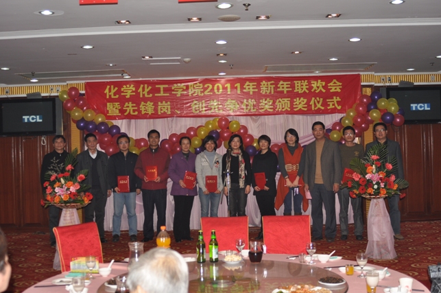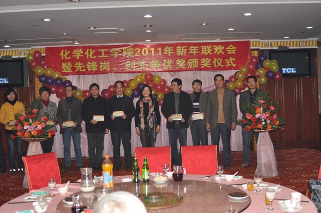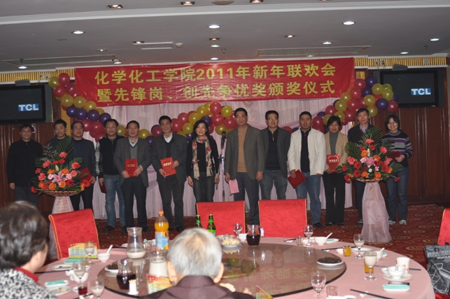 一元复始,辞旧迎新。伴随着新年到来的脚步,12月31日晚,化学化工学院在怡山大厦隆重举行“化学化工学院2011年新年联欢会暨先锋岗、创先争优奖颁奖仪式”。全院教职工欢聚一堂,共同迎接新年的到来。