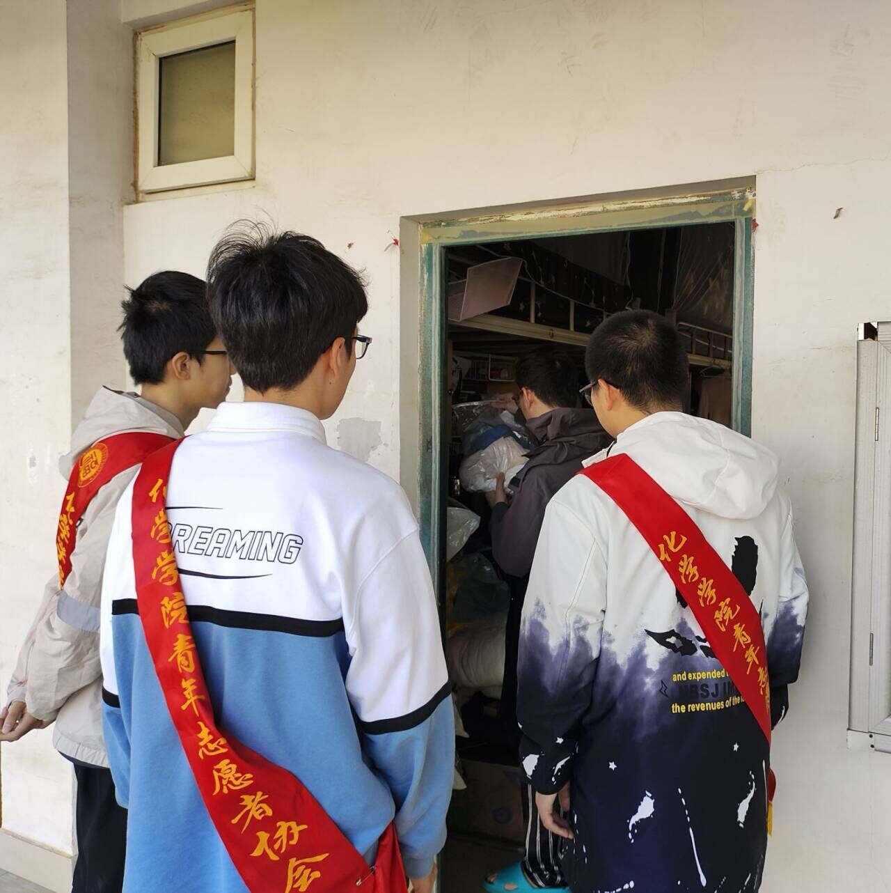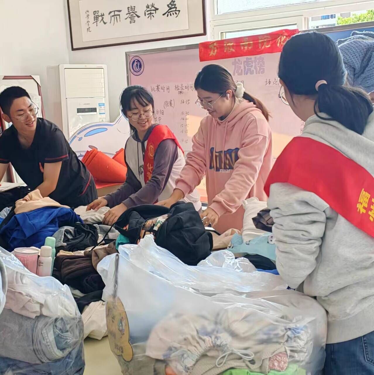 志愿者们有序分队前往各自学院对应宿舍楼上门回收旧衣,收获同学们的满满爱心捐赠。