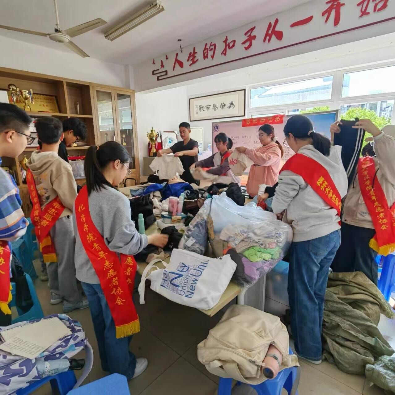 随后,志愿者们回到活动室,认真清点上午收集到的旧衣旧物,做好分类登记并完成打包。