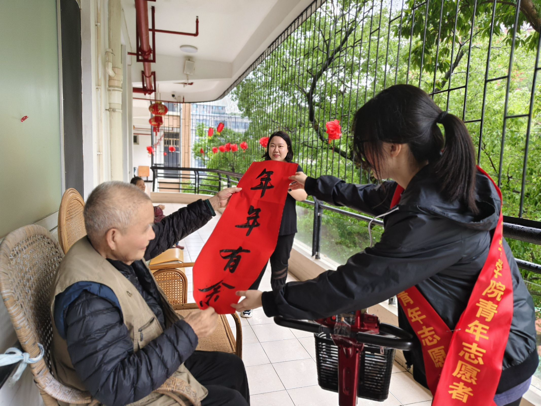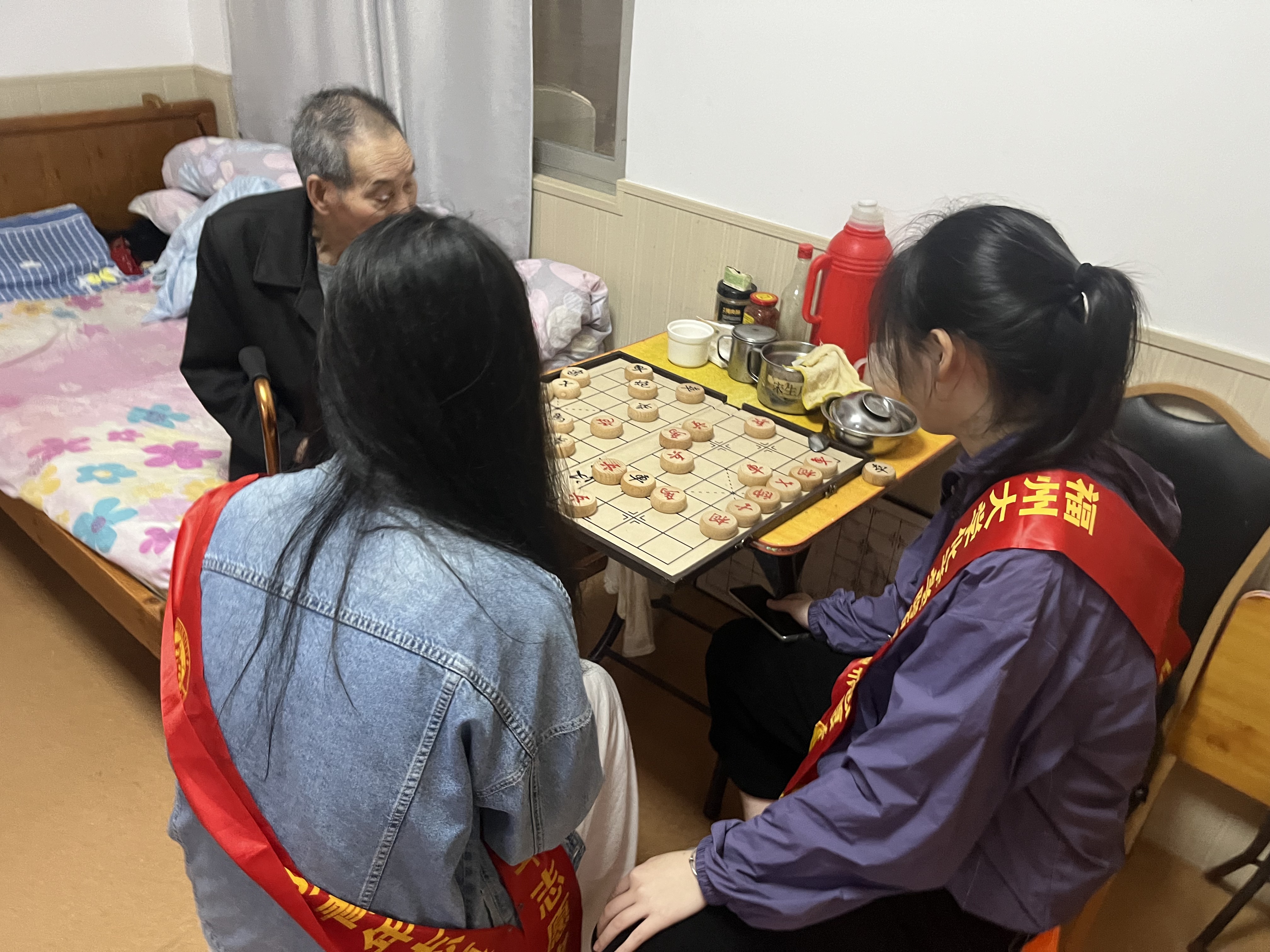 小酚志愿者们更是主动走进宿舍,与老人们聊天、唠家常,了解他们的身体状况、生活条件与家庭情况等等,分享彼此的生活经历。同时,志愿者们还与爱好象棋的老人切磋棋艺,在棋盘上,每一步棋都是智慧的对决,也是代代相传的文化传承。在活动之余,志愿者们更是为老人家们送上亲手书写的书法作品,表达最真挚的祝福。