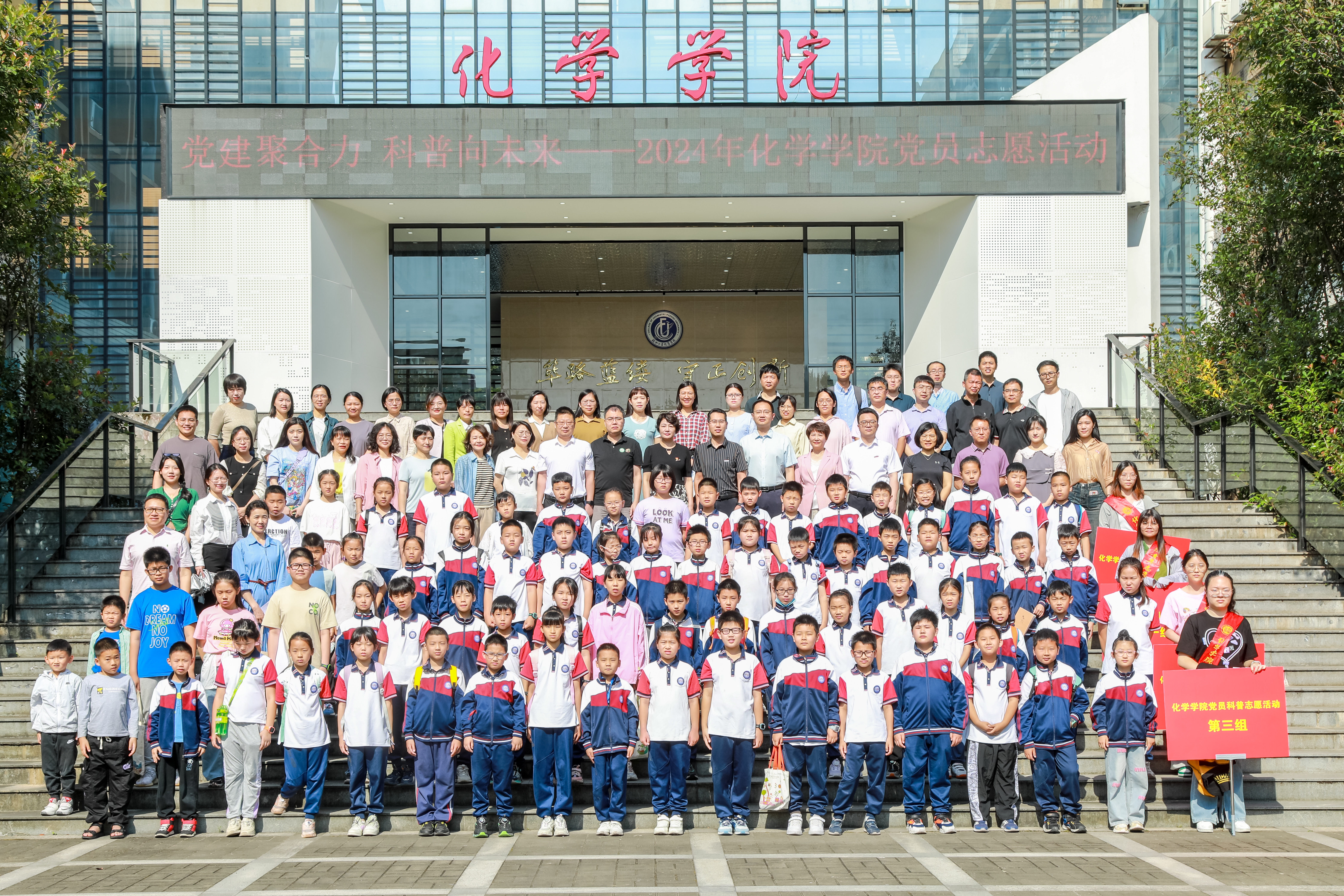 全体教师党员力量,让同学们在神奇有趣的化学实验中,尽情体验化学魅力,不断提高科学综合能力,培养创新精神和实践能力,营造学科学、懂科学、爱科学、用科学的良好氛围。也希望通过此次科普志愿服务活动,让“科普+志愿”的理念更加深入人心,形成协同育人合力,进一步拓宽培养学生的科学素养和科学精神的教育渠道,为国家科技创新人才队伍培养贡献化院力量!