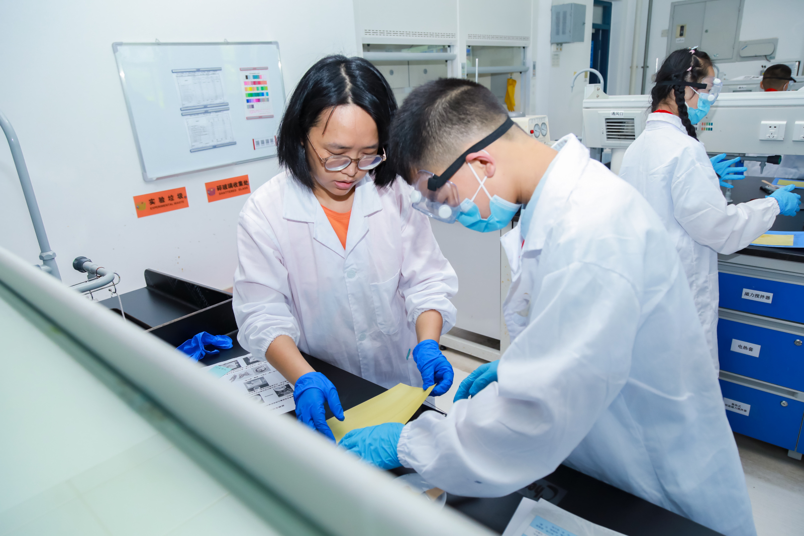“老师,纸张离开紫外线照射后图案会消失吗?”“老师,如果两种溶液加的量不相等的话实验会失败吗?”充满好奇与不解的小朋友们纷纷提问,郭老师耐心地一一进行解答。她提醒同学们,实验室是进行科学探索的重要场所,希望大家在掌握实验原理和实验室安全常识的前提下,尽情体验科学带来的无穷魅力和创造的无限乐趣。聚精会神的小朋友们连连点头,提笔记录。