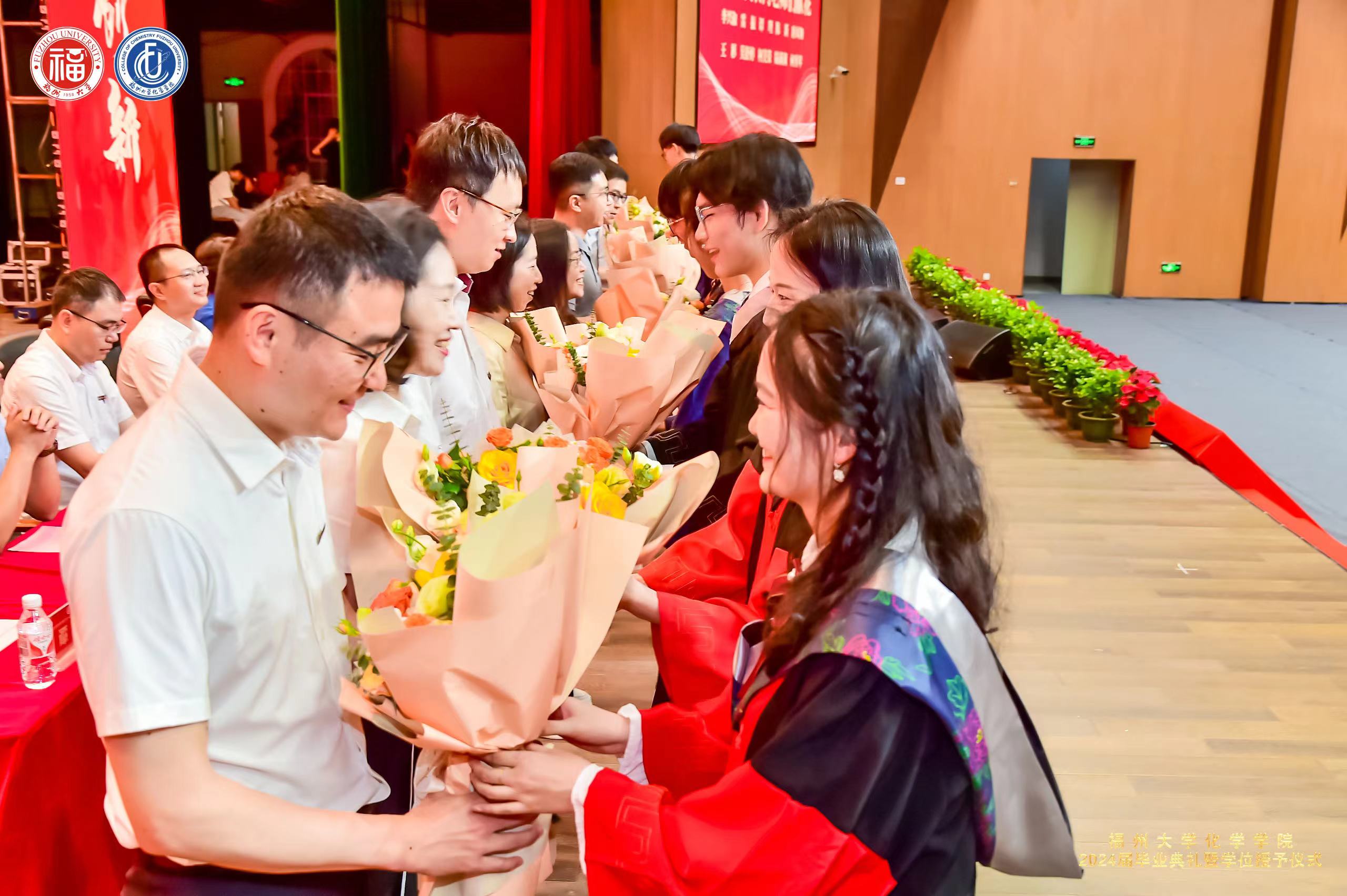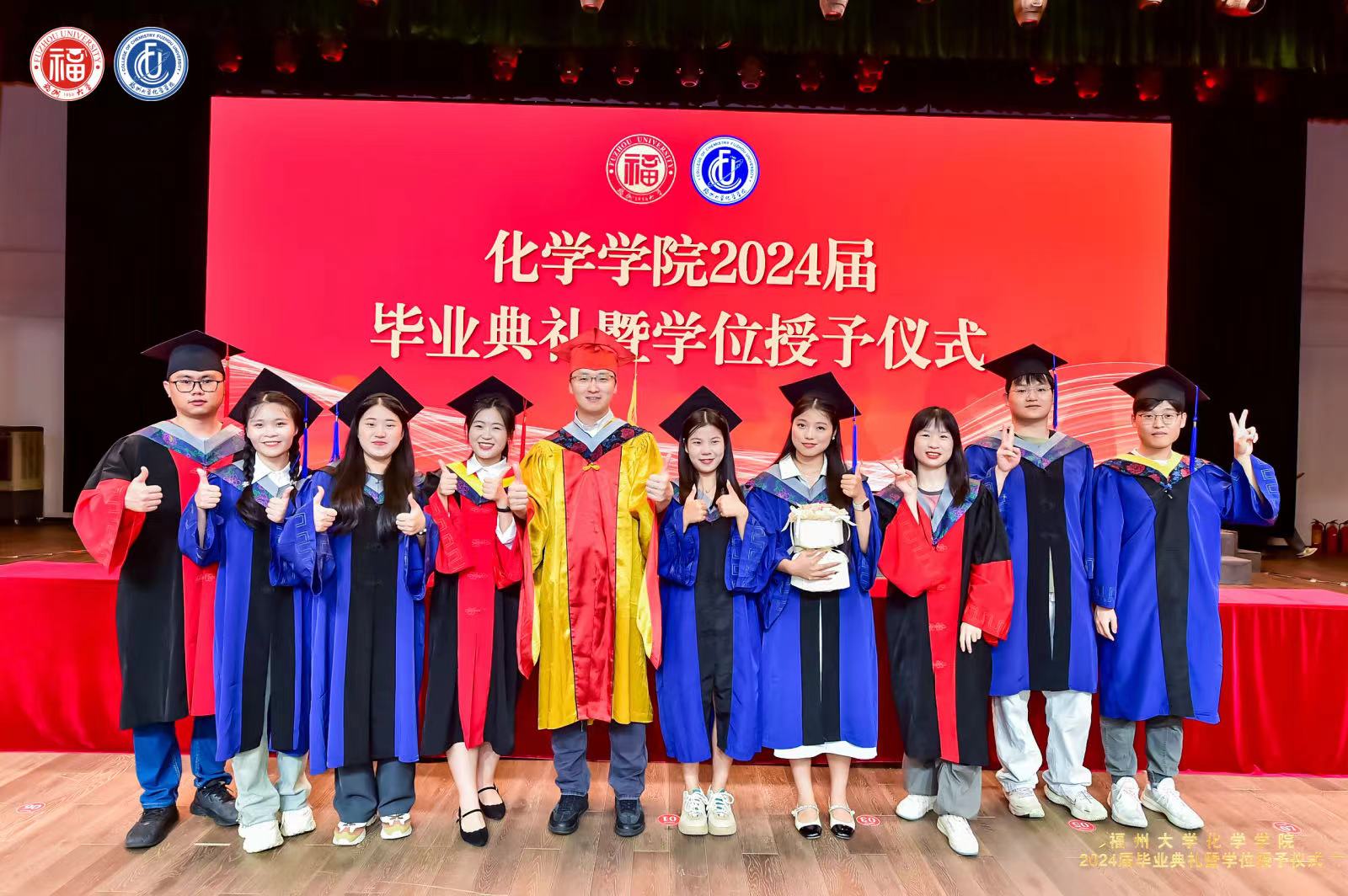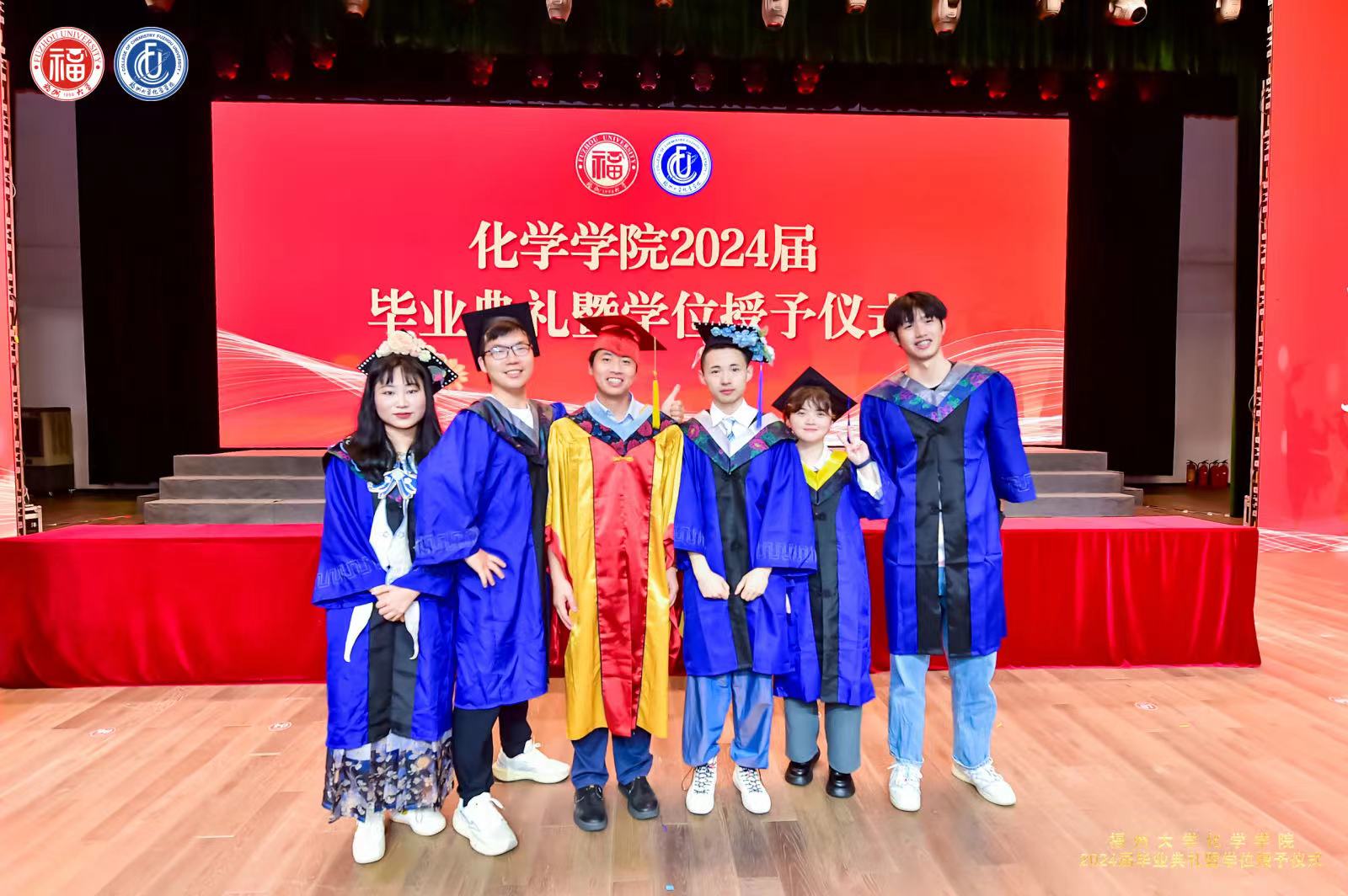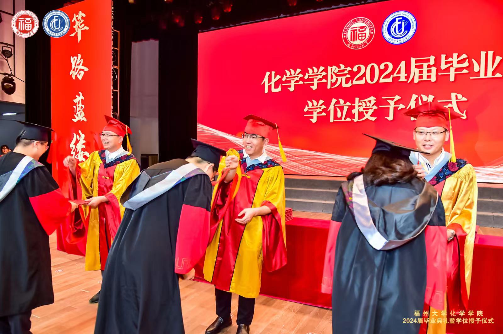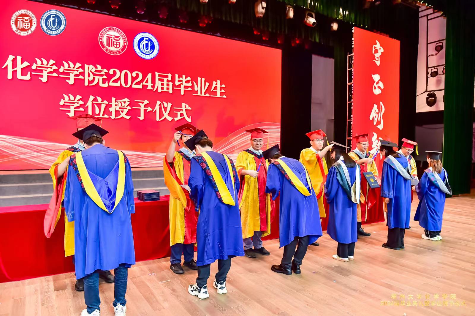 学位授予仪式及拨穗礼中,院长、副院长、院长助理共同上台为毕业生们拨穗正冠,握手祝福,合影留念。此刻,2024届嘉锡青年带着母院的祝福和期望,踏上新的人生旅程。