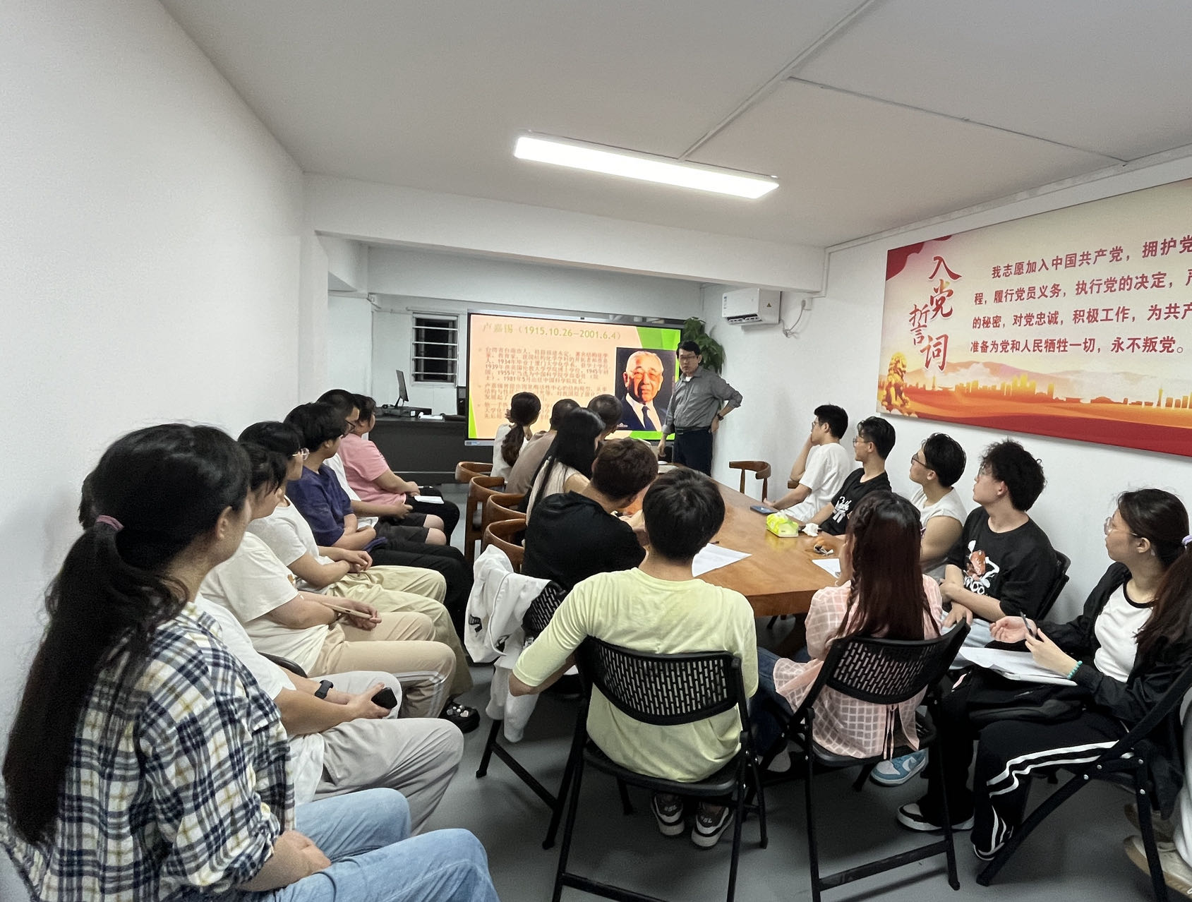 创始人之一卢嘉锡先生的科研精神和贡献。他鼓励同学们继承发扬嘉锡先生倡导的“C3H3”科学家素养,掌握“五重相结合”的研究方法,并深刻理解“毛估比不估好”的科研思想,做到在面对科研决策时心中有数。