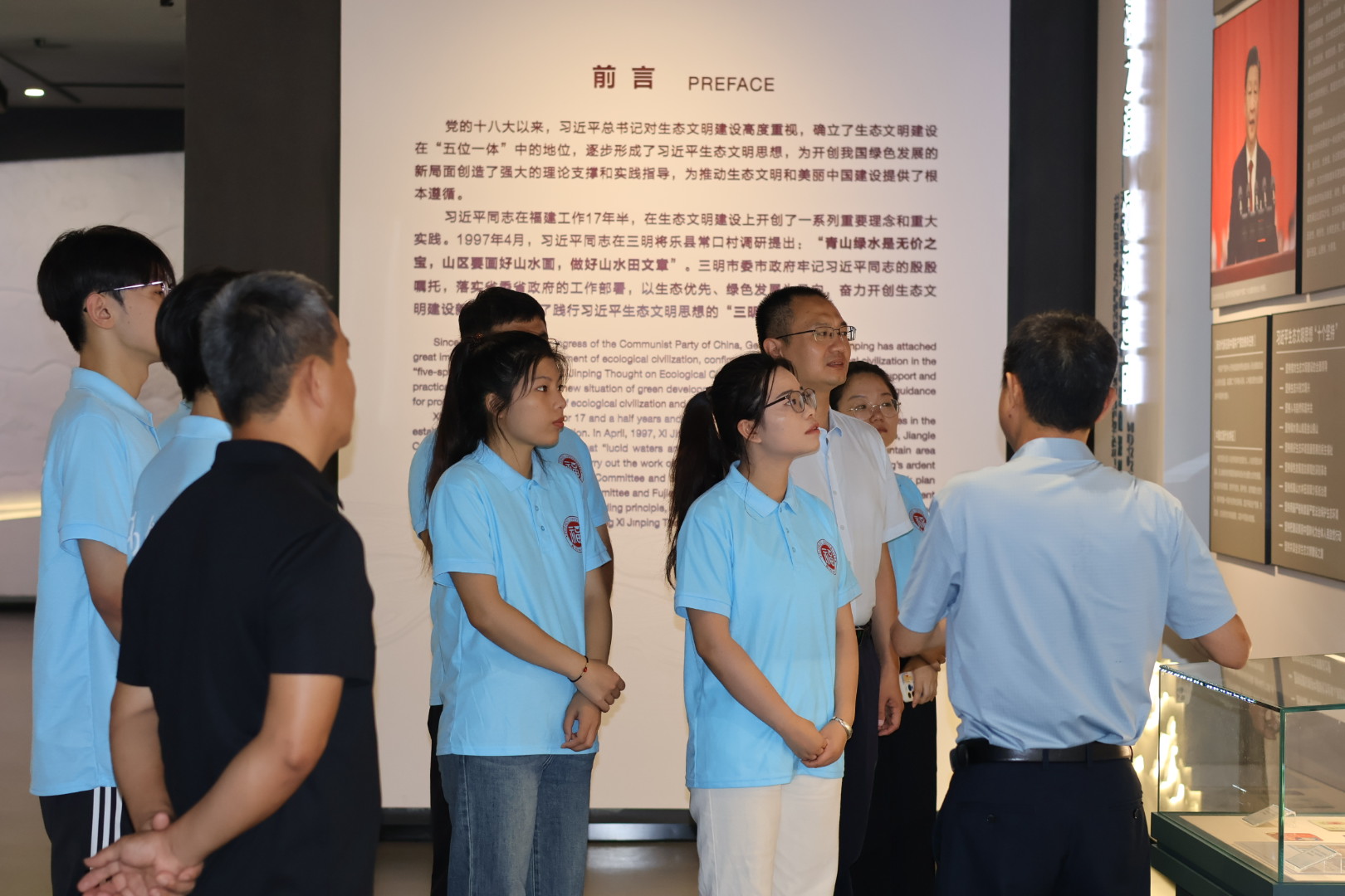 常口村是习近平生态文明思想的重要孕育地和实践地。在常口村的“两山学堂”生态展馆,通过讲解员详细生动的介绍,队员们领会常口村牢记习近平总书记在常口村考察调研时提出的“青山绿水是无价之宝”“山区要画好‘山水画’,做好山水田文章”等重要论述,了解到常口村始终牢记习总书记的嘱托,积极探索实践党建引领下的“两山”转化路径,将可持续发展理念与乡村振兴紧密结合,创新林票碳票,推进青山变现,创造卓越成效。