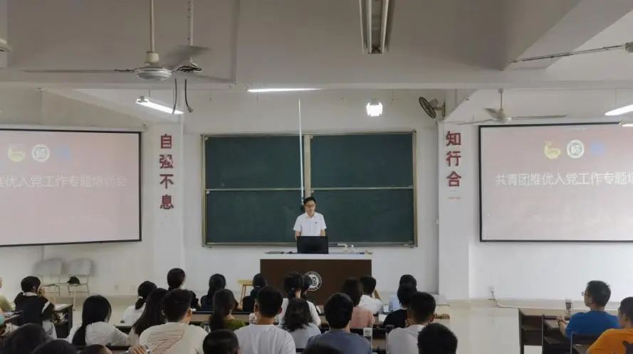 为保持和增强共青团的政治性、先进性、群众性,进一步规范和加强共青团“推优”工作,有效推进党团衔接,活动最后,本科生辅导员陈日懿老师为2024级本科新生开展了共青团推优入党工作专题培训会,详细介绍了制定《共青团推优入党工作实施办法(试行)》的目的和根据,以及发展党员的流程,引领团员青年坚定理想信念,用实际行动向党组织靠拢。