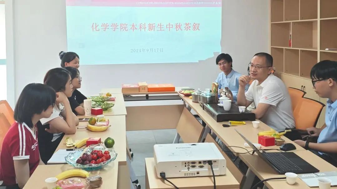 在铜盘校区开展本科新生中秋茶叙活动,学院党委副书记常凯、辅导员李星星、辅导员吕霖杰与2024级本科新生代表欢聚一堂,品茗交谈,欢度佳节。