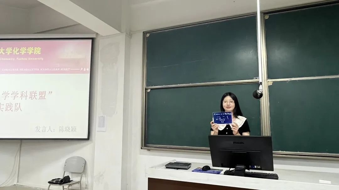 “访街探巷寻根源,智汇乡村启未来”团队成员康国坚代表实践队汇报,康同学简要介绍了实践队深入福建省三明市学习的过程。实践队不仅结合政策与实际向中小学生介绍了高校资助申请流程、生源地助学贷款、贫困生认定、国家助学金等奖助贷的申请条件流程,还高效提炼专业相关知识,在有趣的科普活动中激发高中生们对化学的兴趣和深入学习的意愿。