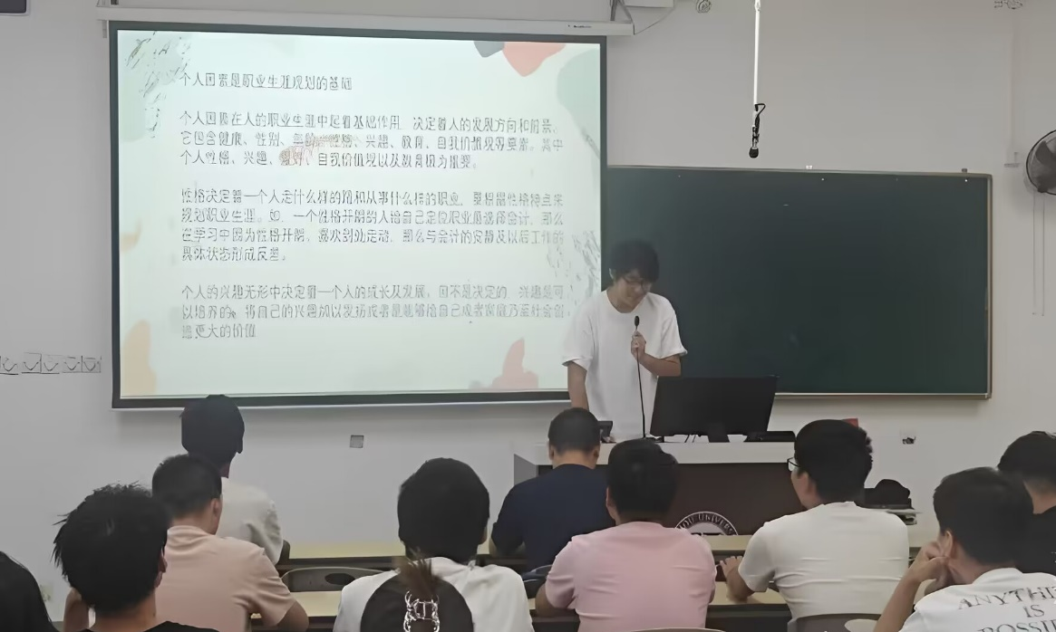 23级化学一班的邓梓苗同学则为大家深入解读了“扬帆计划”的具体内容。他将自己的职业规划与日常工作实践相结合,绘声绘色地介绍了如何寻找到与自身契合的工作,并以高效出色的表现完成工作任务的策略。邓梓苗同学认为,“扬帆计划”的意义远超职场体验的范畴,它更是一次拓宽视野、丰富人生经历的难得机遇。通过参与“扬帆计划”,他激励同学们积极投身于实习之中,以此积累宝贵的经验,为未来的职业发展奠定坚实的基础。