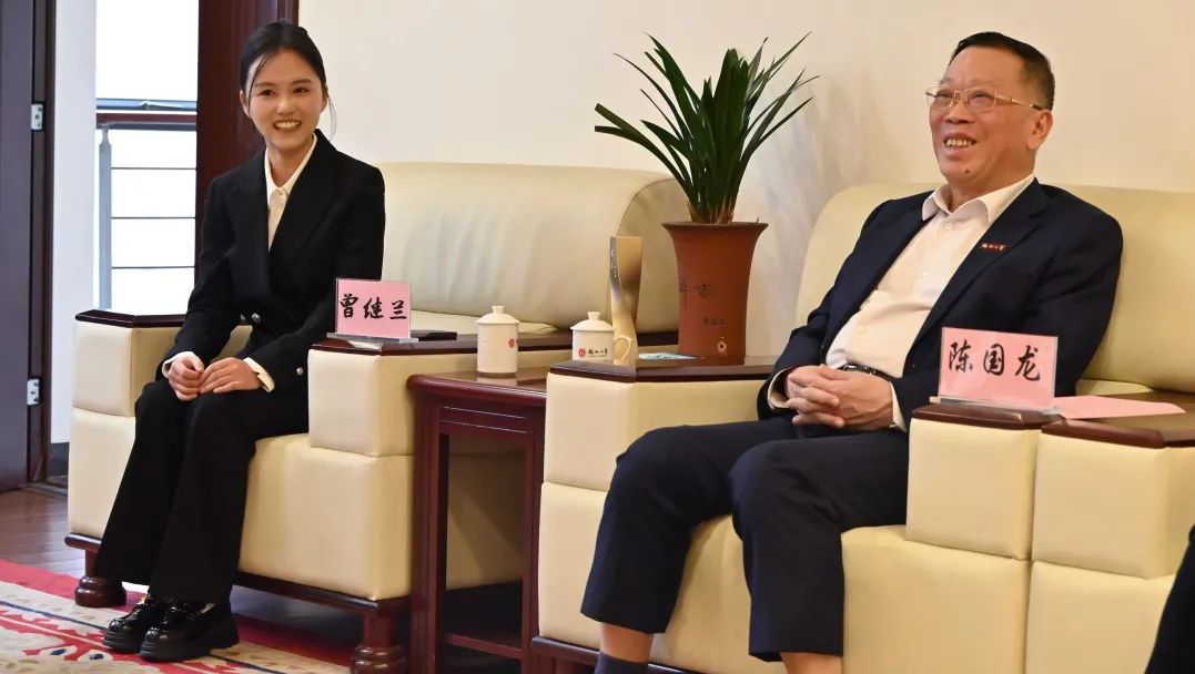 11月21日下午,校党委陈国龙书记与林森、卢雪峰两位老师以及项目成员曾继兰同学亲切交流,高度肯定参赛师生在比赛过程中团结奋进的拼搏精神,展现出了福大学子的青春风采。