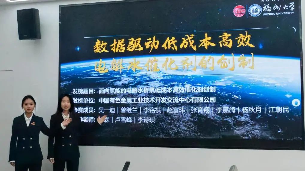 2023级硕士生吴一迪、曾继兰的参赛项目“氢”新“智”造——数据驱动低成本高效电解水催化剂的创制(指导老师林森、卢雪峰),获得团中央和命题单位中国有色金属工业技术开发交流中心有限公司的高度认可,并被大赛组委会选为全国3支学生团队代表之一(另2支为南京大学、电子科技大学学生团队)在颁奖仪式的大舞台上分享揭榜历程和成长收获,展现了“福大版”新质生产力和福大学子挺膺担当、科创报国的精神风貌。