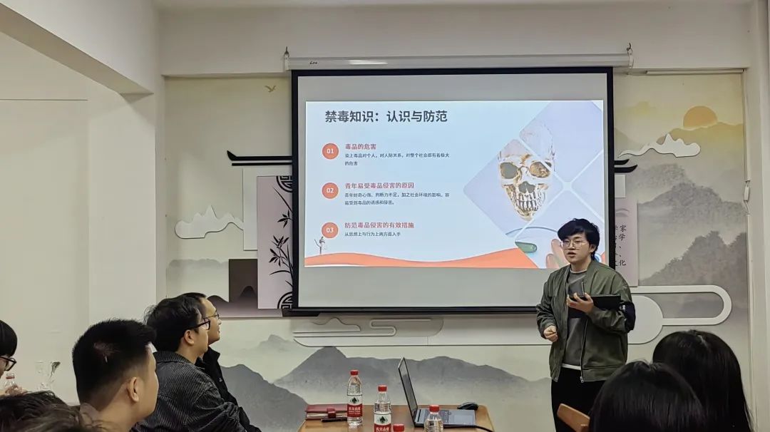副班长向文涛则分享了“禁毒防艾”的相关知识形势。守护健康无小事,安全意识记心间,毒品和艾滋病的危害不容忽视,他提醒同学们应时时注意,谨慎提防。知识问答环节,同学们积极参与,在答题过程中加强和巩固了相关知识,深刻认识到了“禁毒防艾”的重要性。