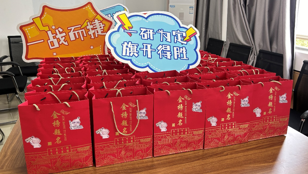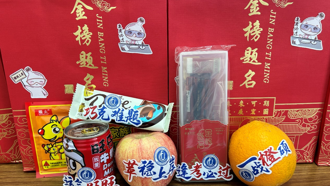 随后,常凯副书记为全体考研学子送上精心准备的考研大礼包,内含一套文具、旺仔牛奶、苹果、橙子、巧克力、暖宝宝等,寓意逢考必过、运气旺旺、“苹”稳上岸、一战“橙”硕和“巧”克难题,承载着学院对考研学子们的亲切关怀与美好祝愿。祝愿所有学子都能“苹”稳上岸、一战“橙”硕!