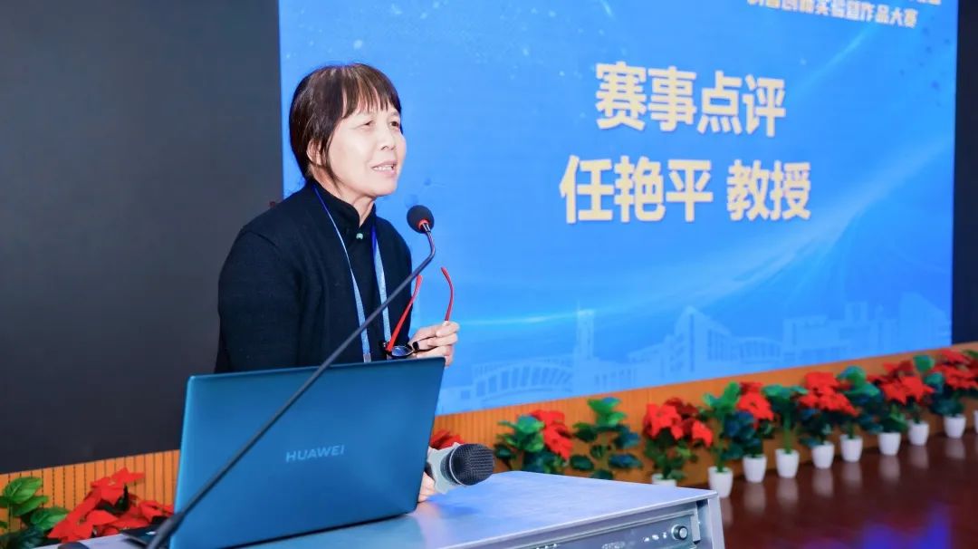 首先,厦门大学国家级实验教学中心(化学)荣誉主任任艳平教授对本届大赛作了赛事总结。任教授表示,本届参赛作品主题广泛,紧扣学科发展前沿,紧密联系日常生活问题,聚焦绿色能源、节能减排等热点,各有其美好。化学结构与人工智能的结合,为我们揭开了探索世界奥秘的新篇章。值得一提的是,24个作品中有12个与颜色相关,这些作品从多角度、多层次展现了化学的美感,在引导年轻一代探索化学和材料科学的实际应用上具有积极意义。此外,任教授对参赛作品存在的不足之处进行了点评,希望未来的赛事能够涵盖更广泛的题材,并鼓励学生在设计中融入自己的理解和思考,通过竞赛活动提升科学精神、教学方法和科学知识的传播。