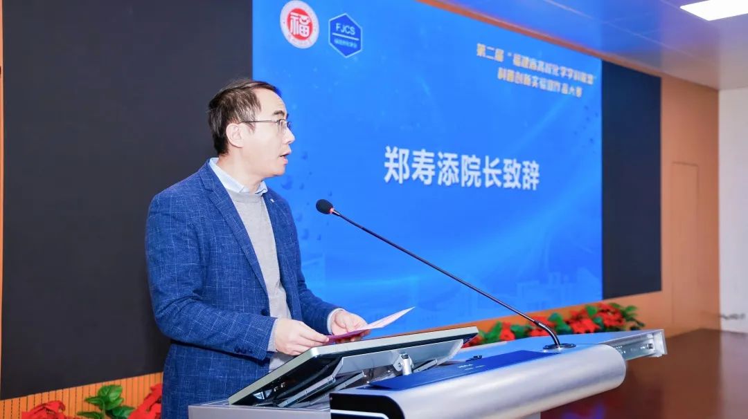 院长、福建省化学会副理事长郑寿添教授致辞表示:“化学作为一门历史悠久而又富有活力的科学,它不仅是现代工业的基石,更是人类文明进步的重要推动力。化学科普在提高公众科学素养和促进科研成果转化等方面都具有重要意义,需要持续加强和推广。今年,该项赛事已经升级为福建省高校化学学科联盟和福建省化学会共同主办的竞赛,同时还有来自省外的参赛队伍加入到比赛中,这标志着该项赛事影响力正在不断扩大,也预示着我省的化学科普工作正逐步扩展至全国。”