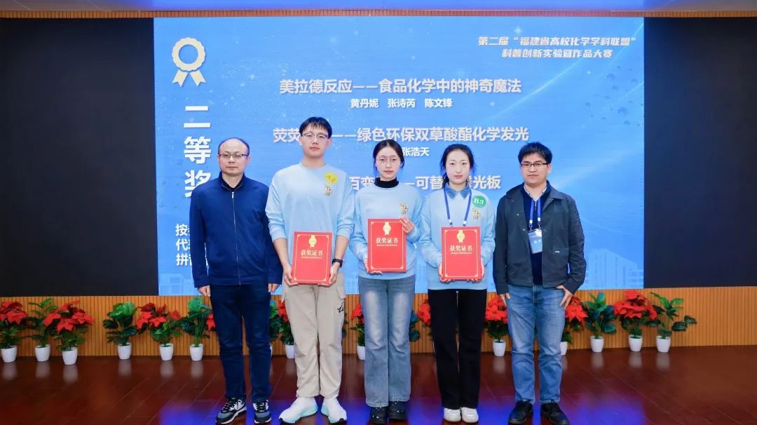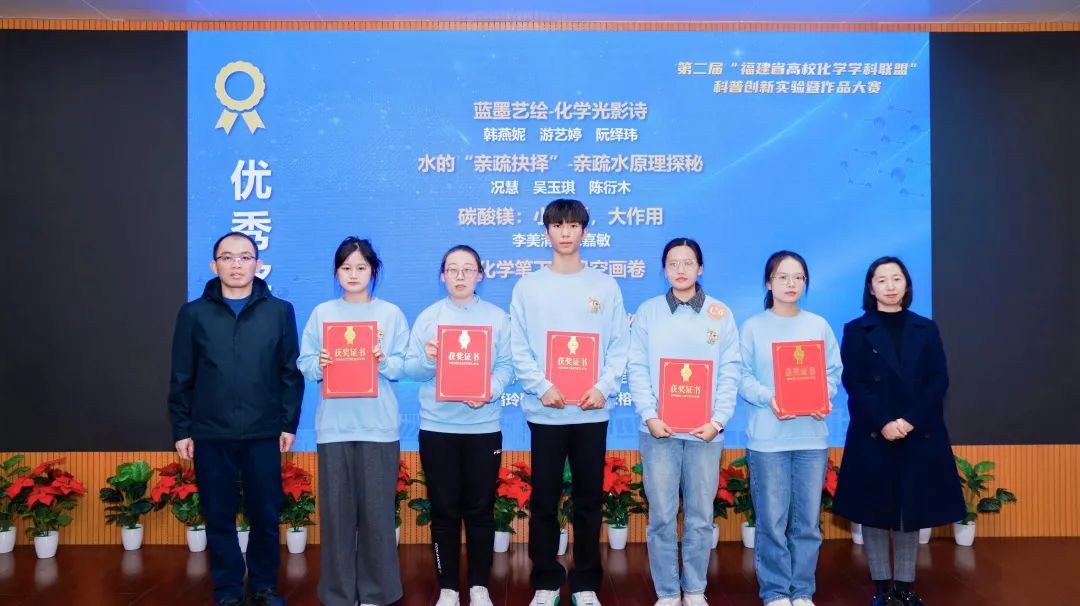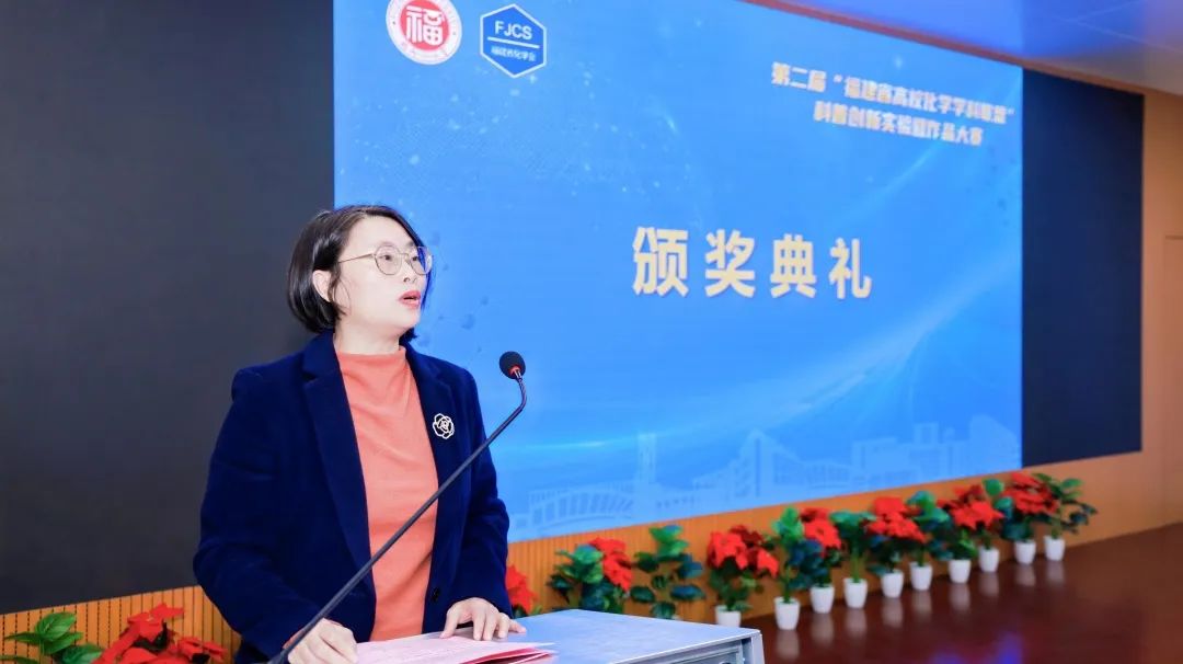 随后,魏巧华研究员代表组委会宣布了第二届“福建省高校化学学科联盟"科普创新实验暨作品大赛获奖公示名单并进行颁奖。其中,一等奖2项、二等奖4项、三等奖6项、优秀奖若干项。
