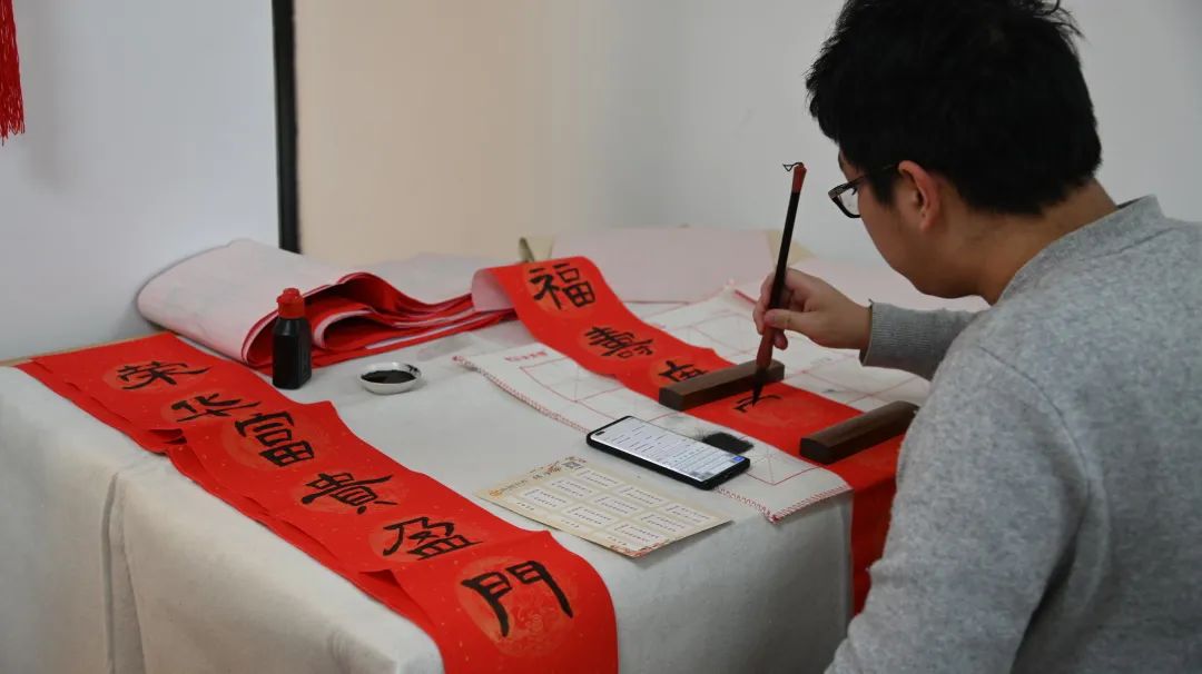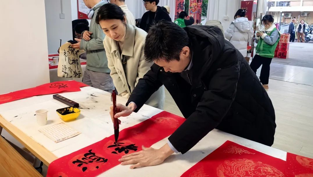 在活动现场,校友和师生们满怀激情,挥毫泼墨、笔走龙蛇,以笔寄意、以字传情,一幅幅充满着新春气息的春联和一张张满载着真诚祝愿的“福”字跃然纸上,书写的是汉字,传递的是祝福,温暖的是人心,大家在书写中感受传统年味,在墨香未干的春联祝福里开启蛇年新程。
