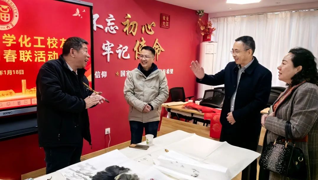 党委常凯副书记、化工学院党委蒋林娟副书记与到场的校友们和师生们相聚一堂,用笔墨传递祝福,以书香温润人心,共同送上新春的美好祝福。