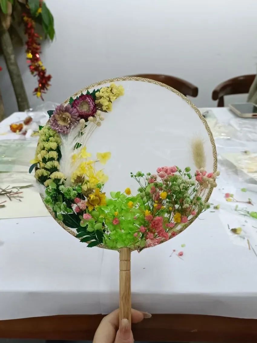 “没想到干花和团扇这么配!我用花瓣拼出蝴蝶”——@化院小玲