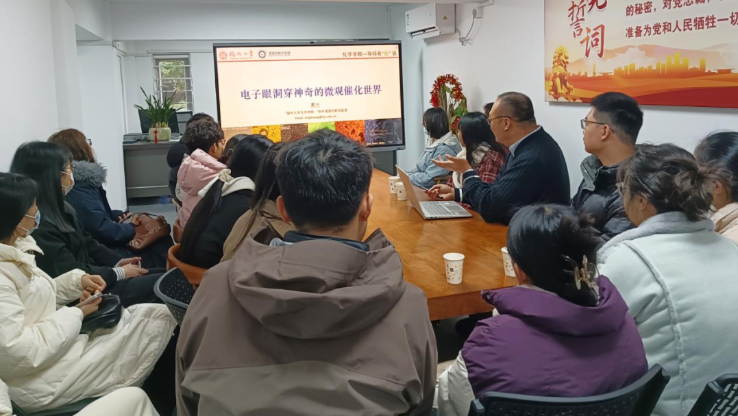 为推进导师进社区开展育人实践活动,着力构建和谐导学关系,赋能学生全面发展,3月31日下午,第七期导师有“化”说在“一站式”健身活动共享空间党团活动室顺利举办。国家级青年人才、博士生导师黄兴教授以“电子眼洞穿神奇的微观催化世界”为主题,与同学们展开深入交流与讨论,分享在科研路上的经验心得。活动由创新创业党支部和“一站式”学生社区党支部联合承办。