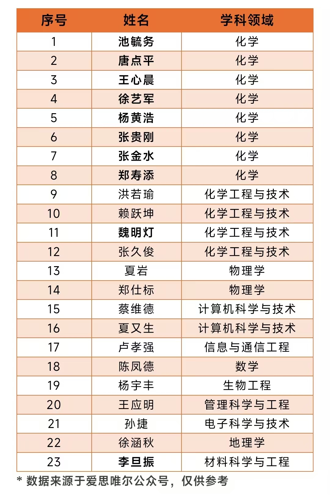共10名学者上榜,分别为:池毓务、唐点平、王心晨、徐艺军、杨黄浩、张贵刚、张金水、郑寿添、魏明灯、李旦振。