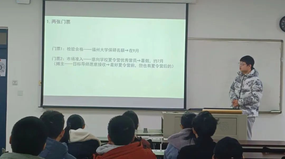 保研至复旦大学的张持学长围绕保研时间规划、热门学科解析及面试技巧等关键点展开分享。他以自身参加复旦大学夏令营的经历为例,分享了时间管理的重要性及缓解压力的方法,助力同学们明确目标。最后他鼓励大家扎实基础,保持平和心态,祝愿每位同学都能勤耕不辍,成功保研!