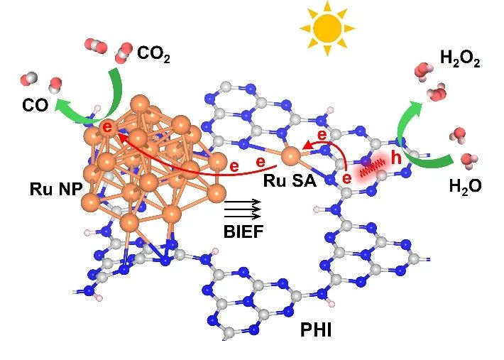 有鉴于此,本研究将Ru单原子(SAs)和Ru纳米粒子(NPs)分别通过平面内Ru-N4配位和界面Ru-N化学键修饰在聚(庚嗪酰亚胺)(PHI)上,实现了高效和持久的CO2光化学还原过程