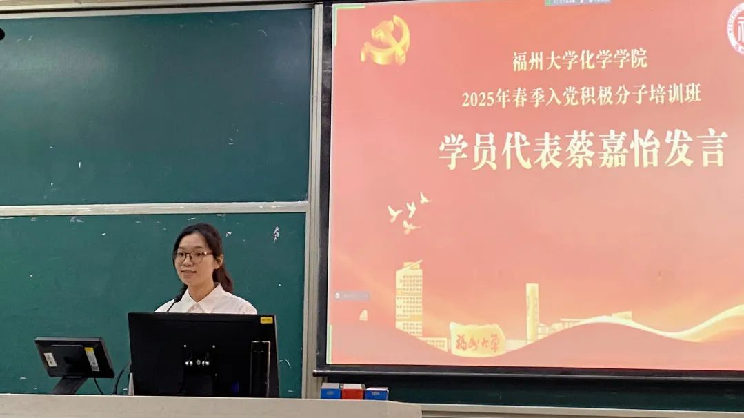 2024级硕士研究生蔡嘉怡作为学员代表发言。她表示将坚定理想信念,积极向党组织靠拢,并将以此次培训为起点,努力学习,积极进取,时刻牢记党的宗旨,全心全意为人民服务,为实现中华民族伟大复兴的中国梦不懈奋斗。