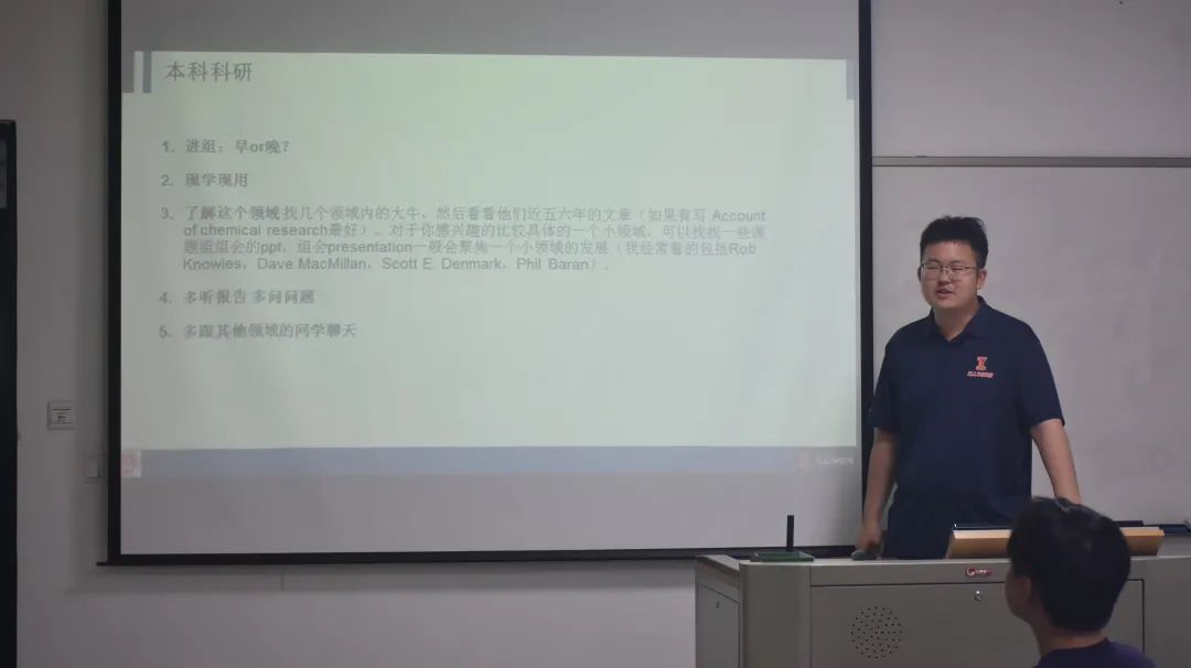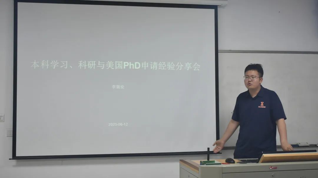“师兄师姐有‘化’说”系列分享会在实验中心南402成功举办。李懿伦学长带着本科学习、科研探索与美国PhD申请的宝贵经验,为同学们开启了一场干货满满的科研逐梦成长之旅。