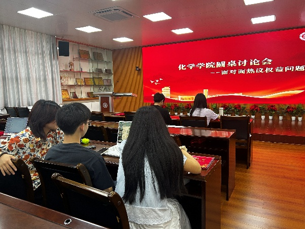 以“全心权益,服务同学”为目标,在嘉锡楼413会议室发起圆桌讨论会。学院研究生会主席团薛万清、程瑜,权益部负责人矫乾鹏与各班级权益委员齐聚一堂,围绕校园学习生活等议题展开深度交流,共同为优化校园环境建言献策。