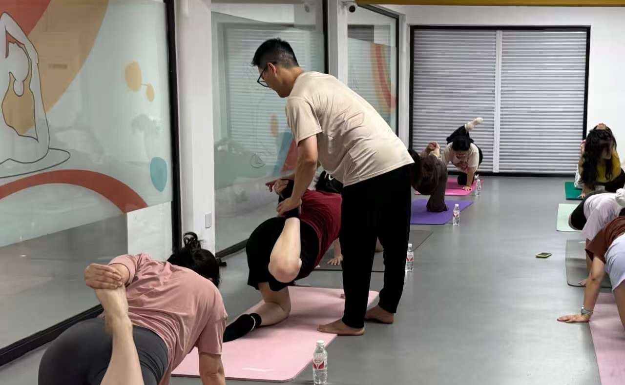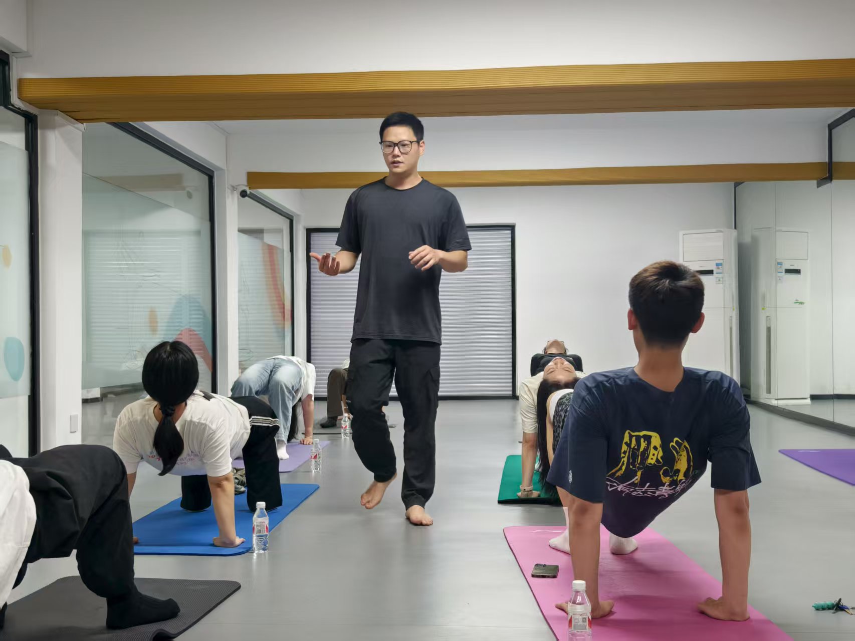 课程在巩固“正确的体式”“呼吸的控制”“内心的专注” 三大核心原则的基础上,增加了三角式、树式、下犬式等进阶体式。在教学过程中,陈国斌老师时刻关注着每一位同学的动作,耐心地纠正细微偏差,鼓励大家循序渐进地完成挑战。