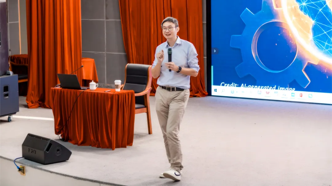 在图书馆明德厅顺利开展“嘉锡”科学讲座第001期暨2025级研究生新生入学教育。新加坡国家科学院院士、南洋理工大学教授陈晓东担任首讲嘉宾做专题报告。院长钟羽武教授主持本次活动,学院党委书记曾忠毅、学院党政班子成员、教师代表及2025级全体研究生参加了本次报告会。