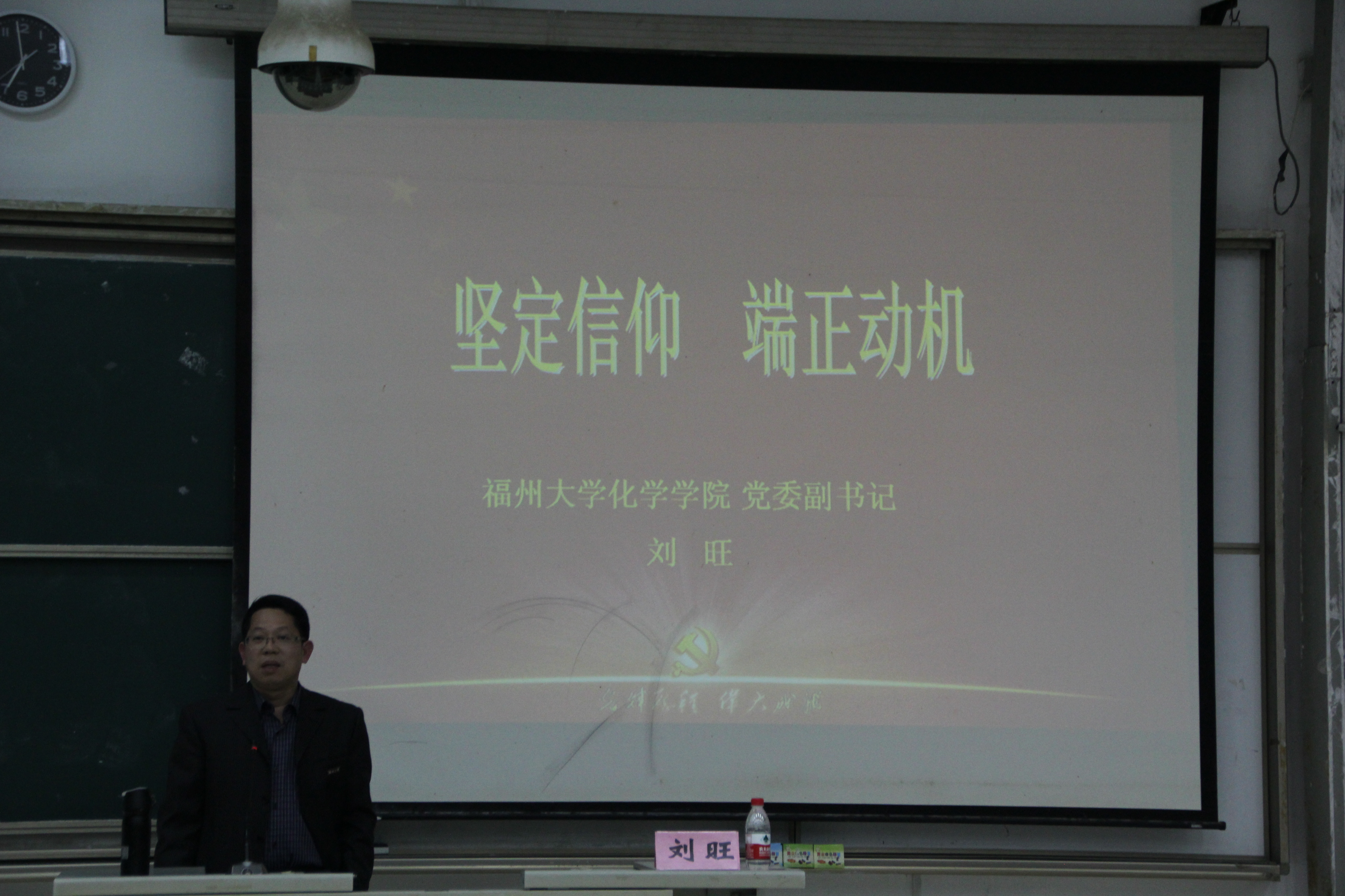 接着,由刘旺书记围绕《坚定信仰,端正动机》这一主题为入党积极分子们展开讲课。刘旺书记首先从什么是信仰入题,讲到理想信念的的强大力量,到什么是唯一且正确的入党动机,以及如何端正入党动机,以实际行动争取早日入党。