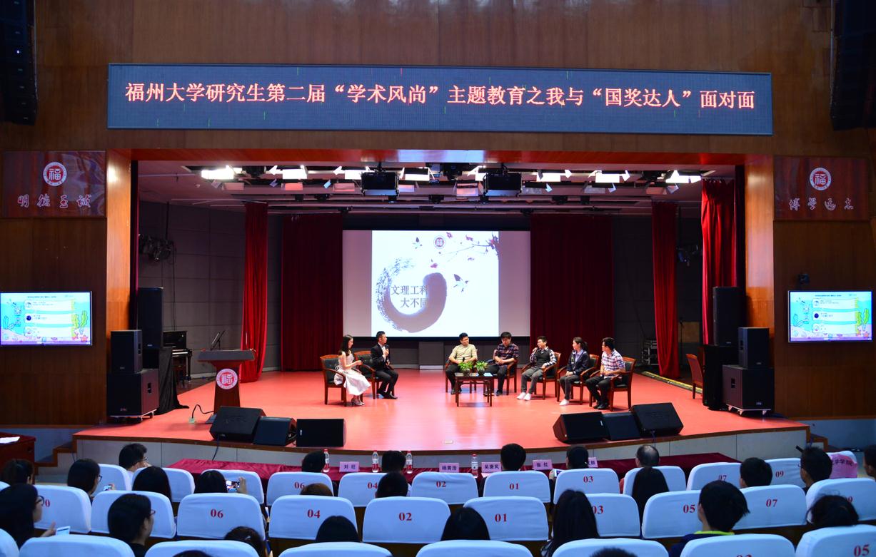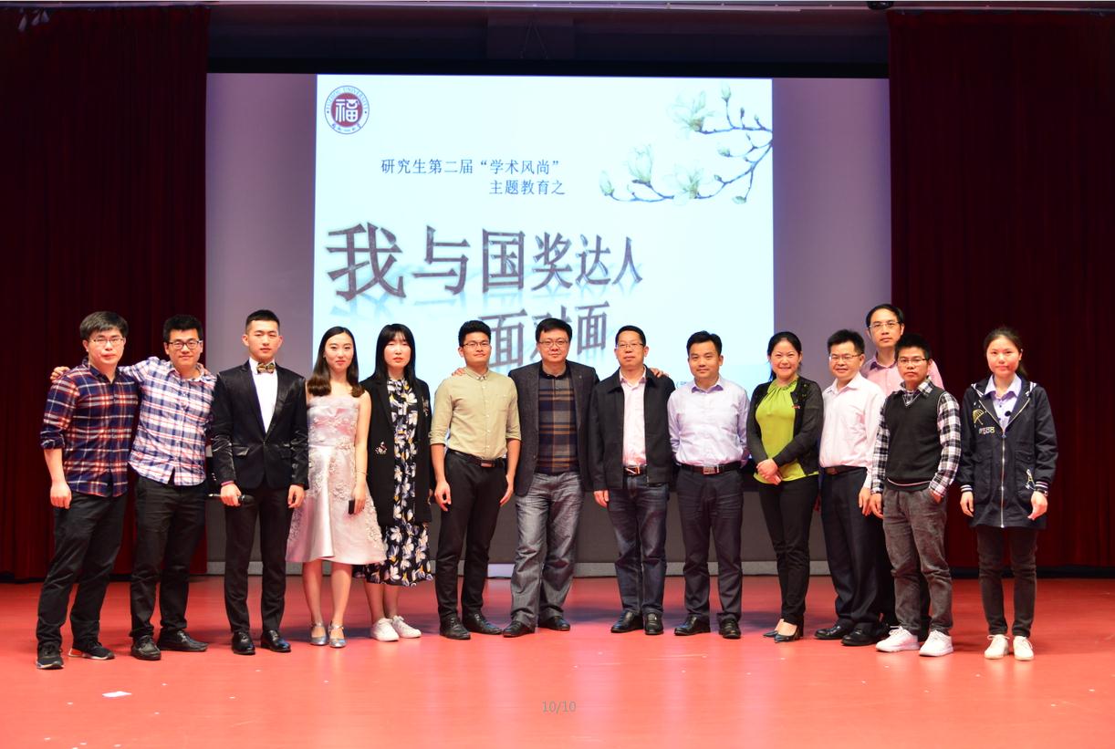 研究生第二届“学术风尚”主题教育之我与“国奖达人”面对面活动在图书馆博学厅隆重举行。教育部长江学者、校研究生院常务副院长杨黄浩,校学生工作部(处)副处长、研究生工作部(处)副处长吴唐风,经管学院党委副书记陈伟民,物信学院党委副书记张红,机械学院党委副书记林文麟,91快活林